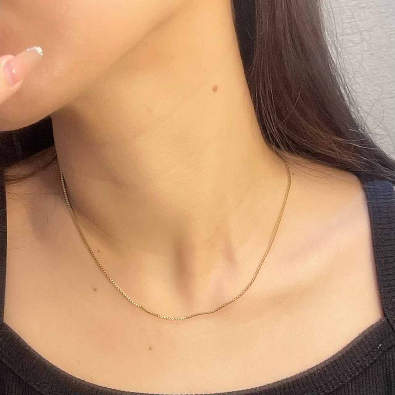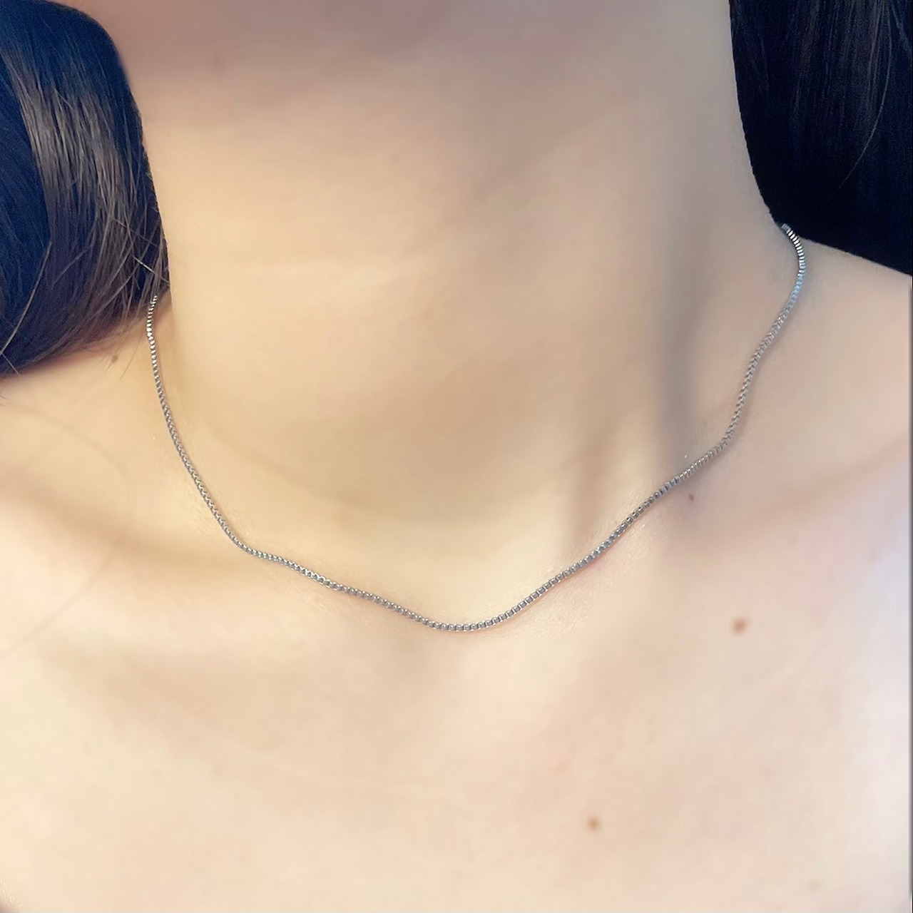 1.2mmの極細チェーンですが、ベネチアチェーンのデザインが細見ながらも存在感もあり