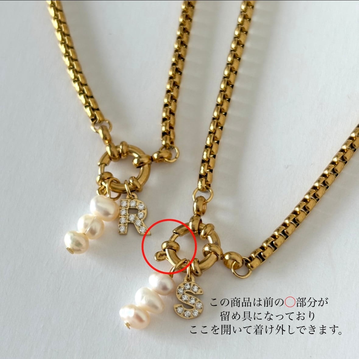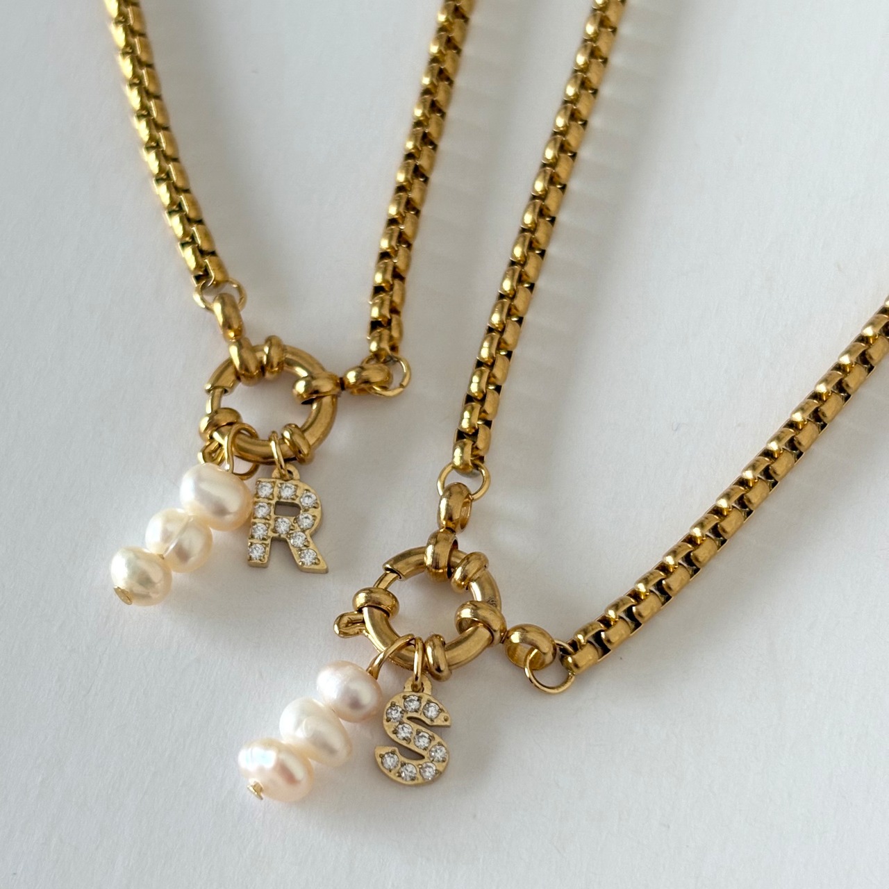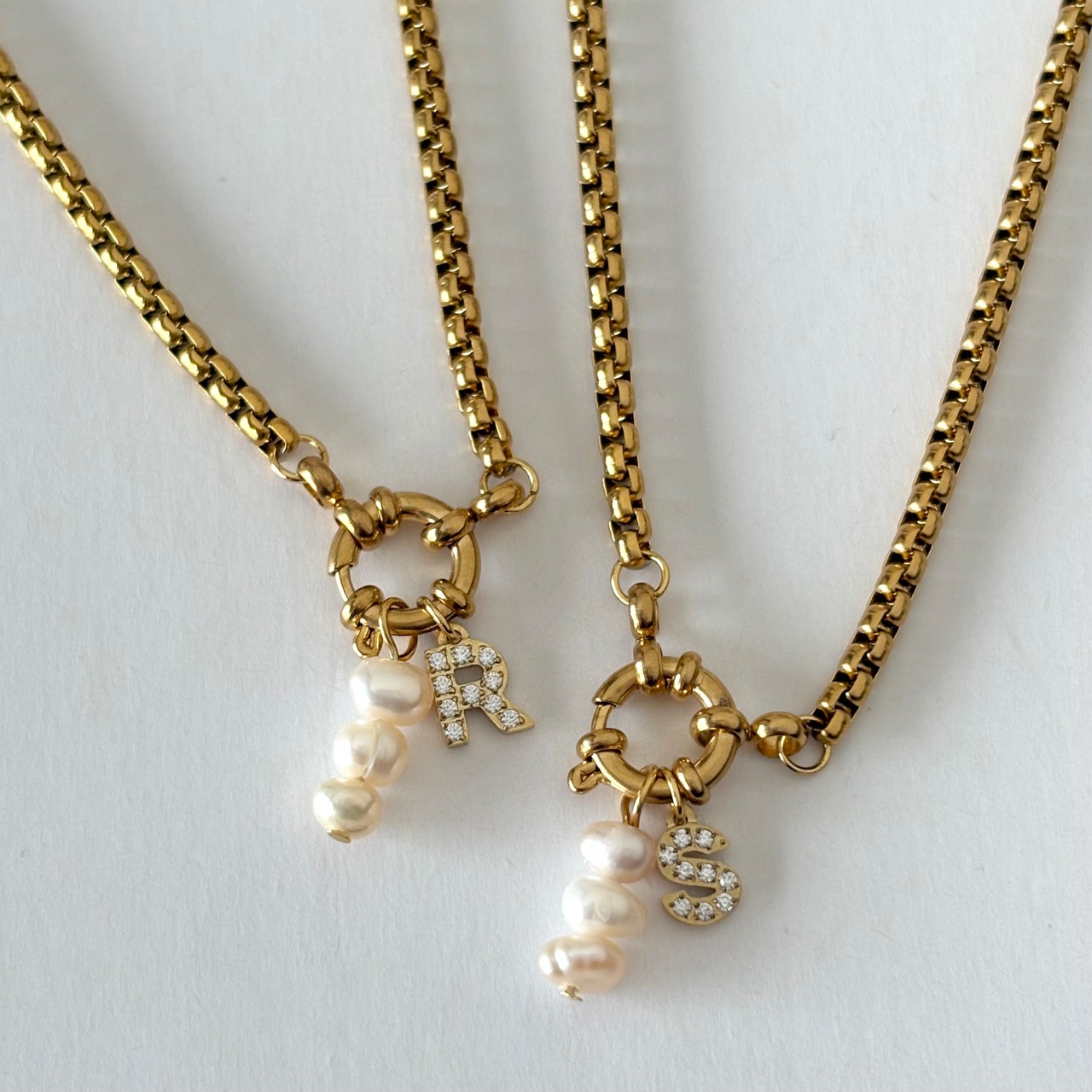 大人気のジルコニアイニシャルと淡水パールを組み合わせたネックレス。