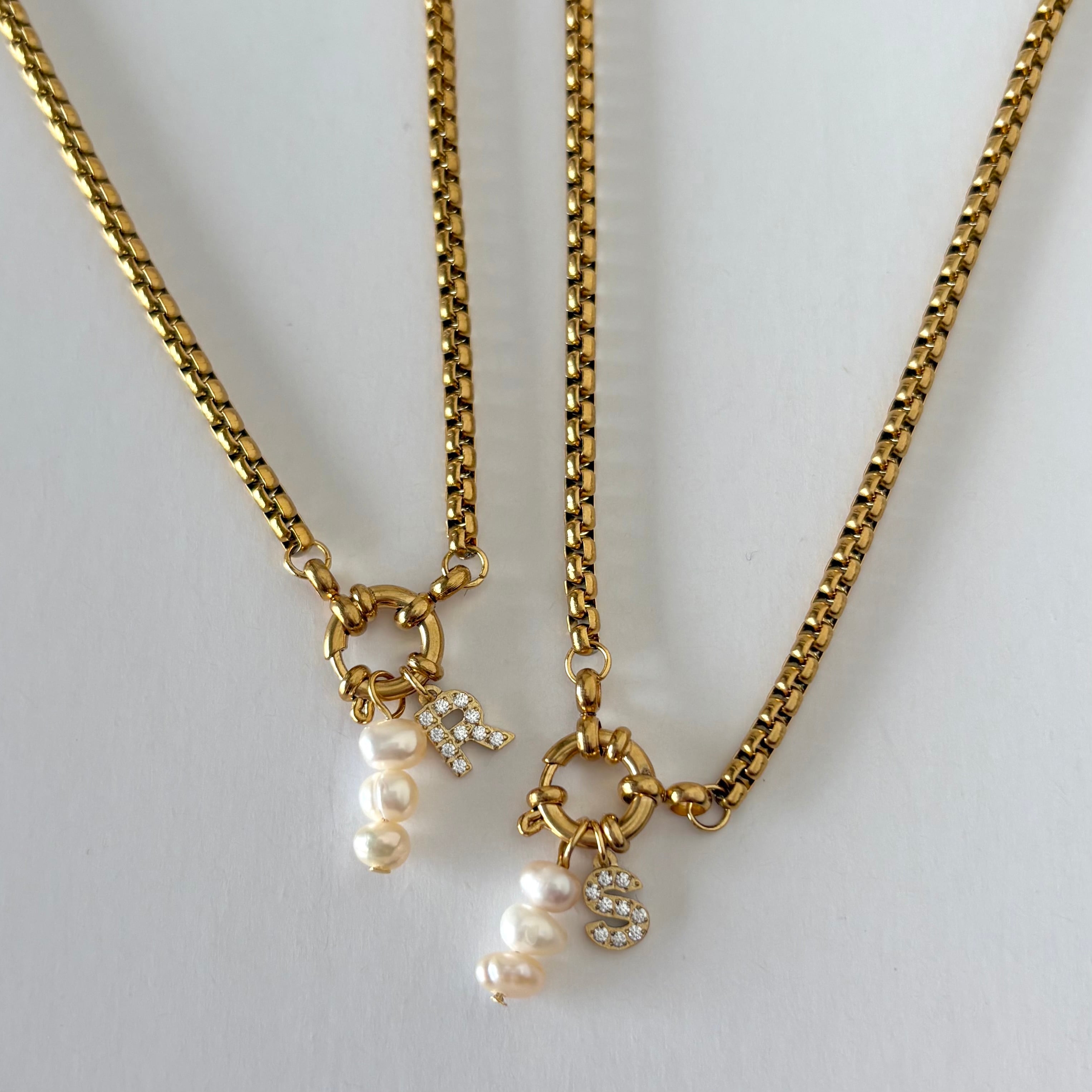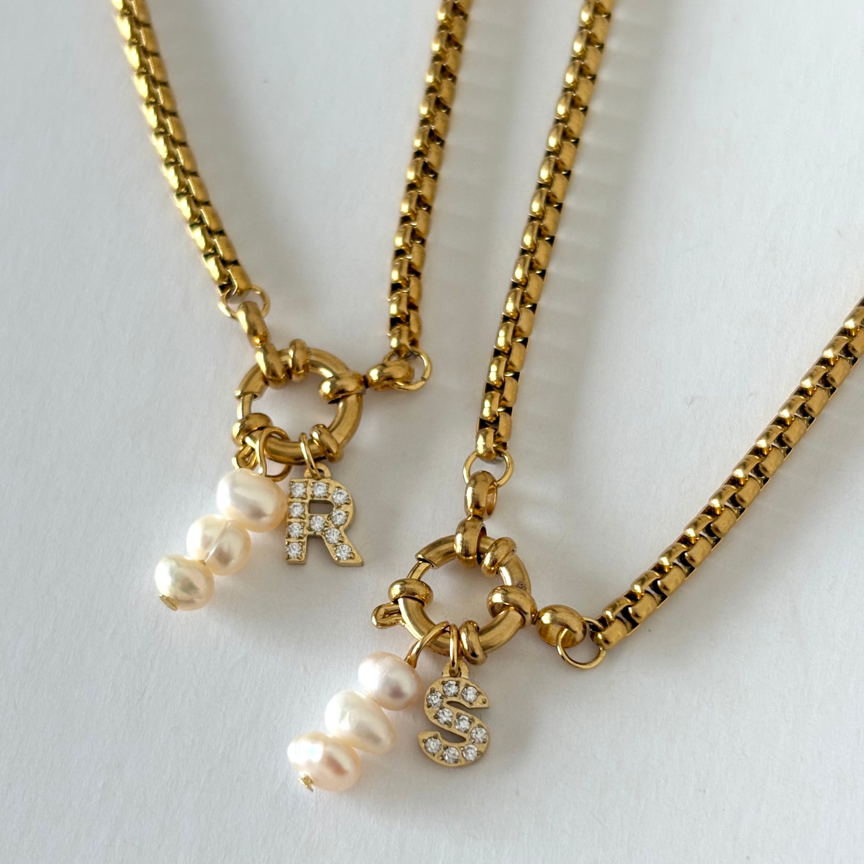 選べるジルコニアイニシャル 淡水パール ベネチアンチェーンネックレス