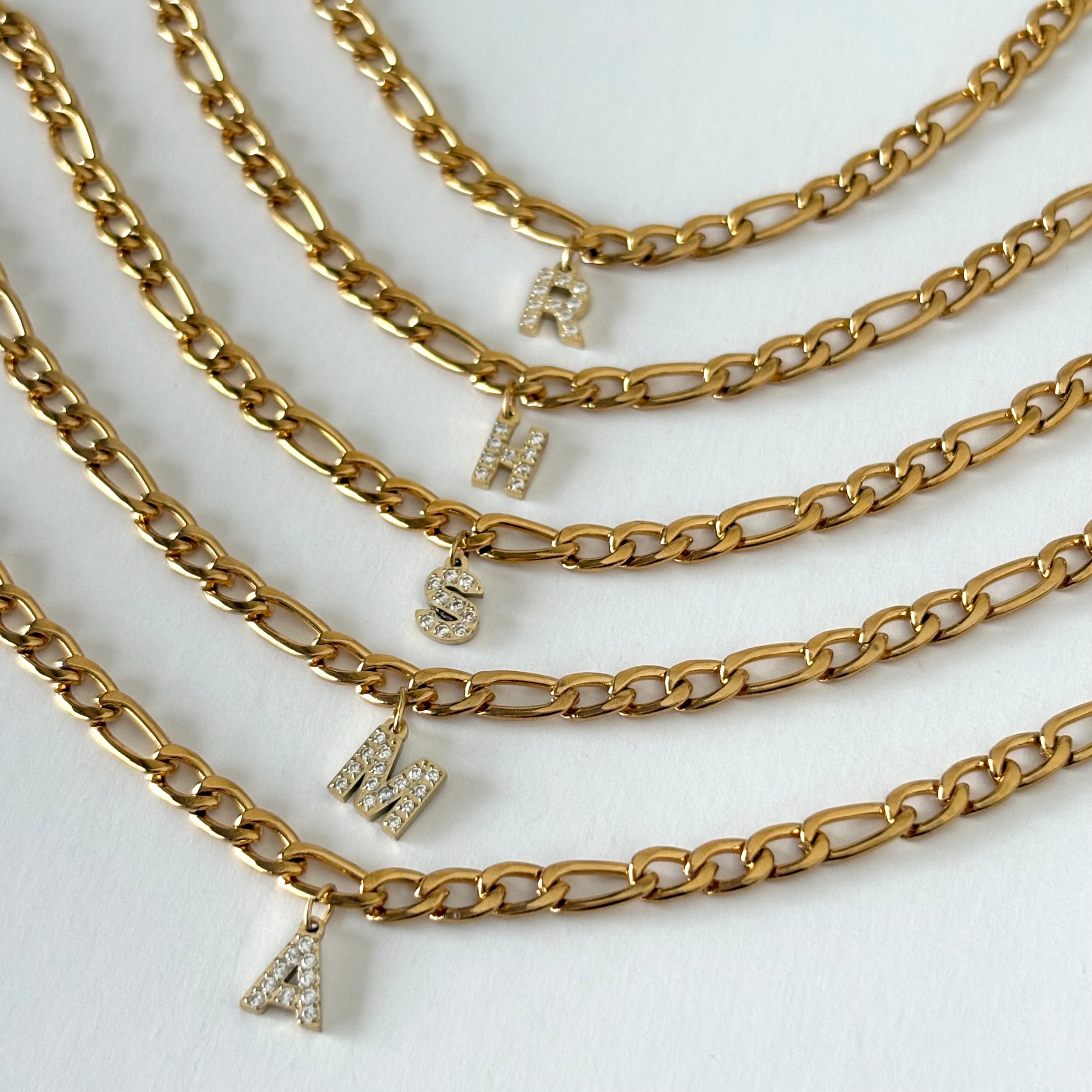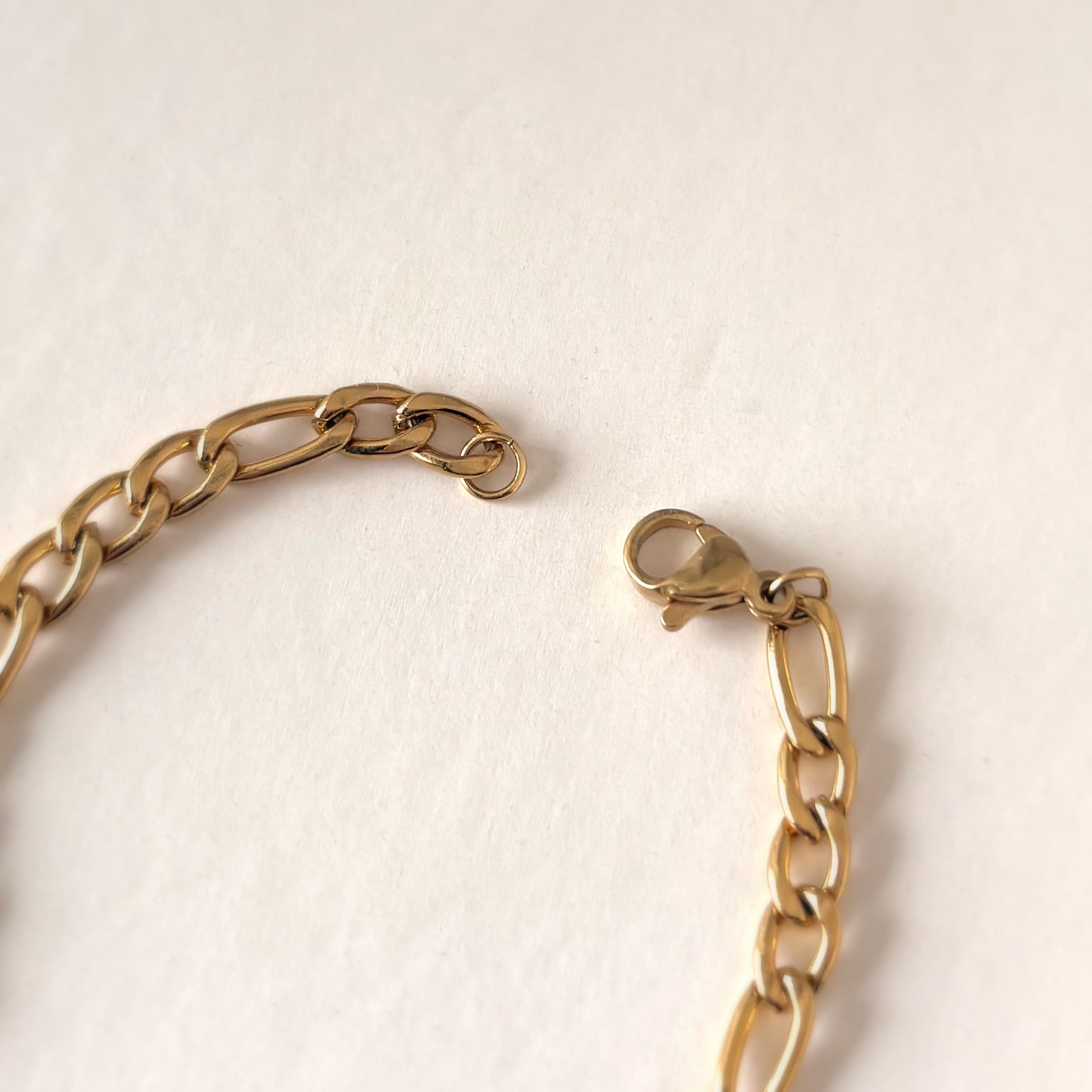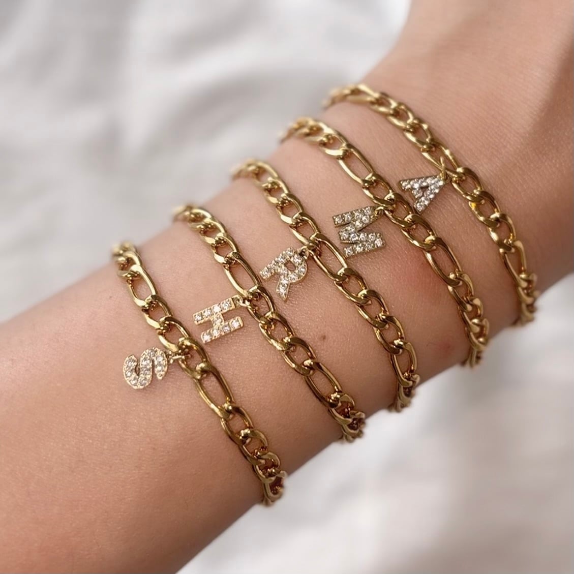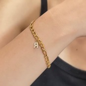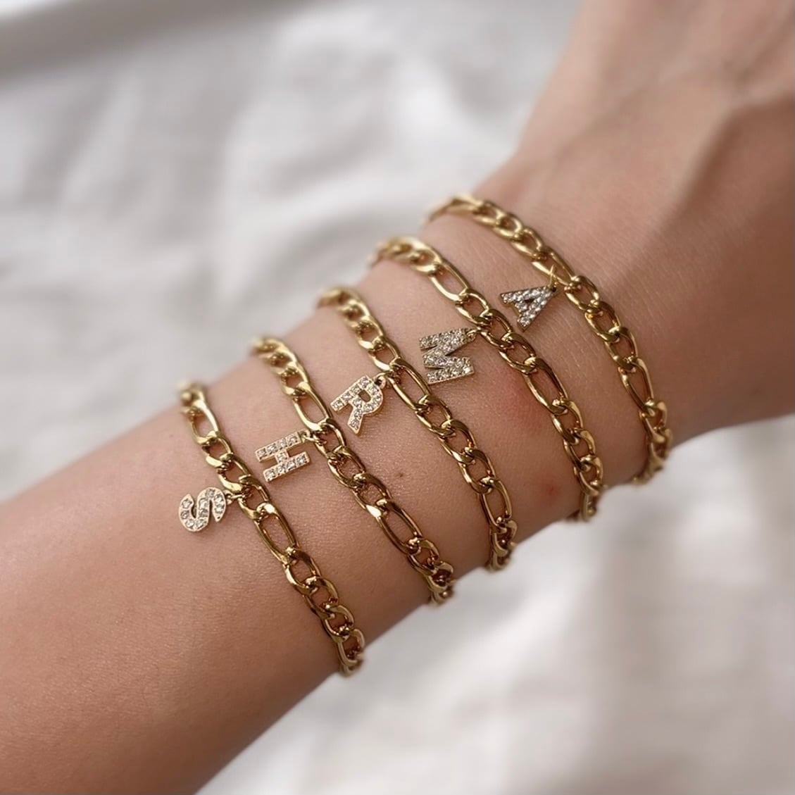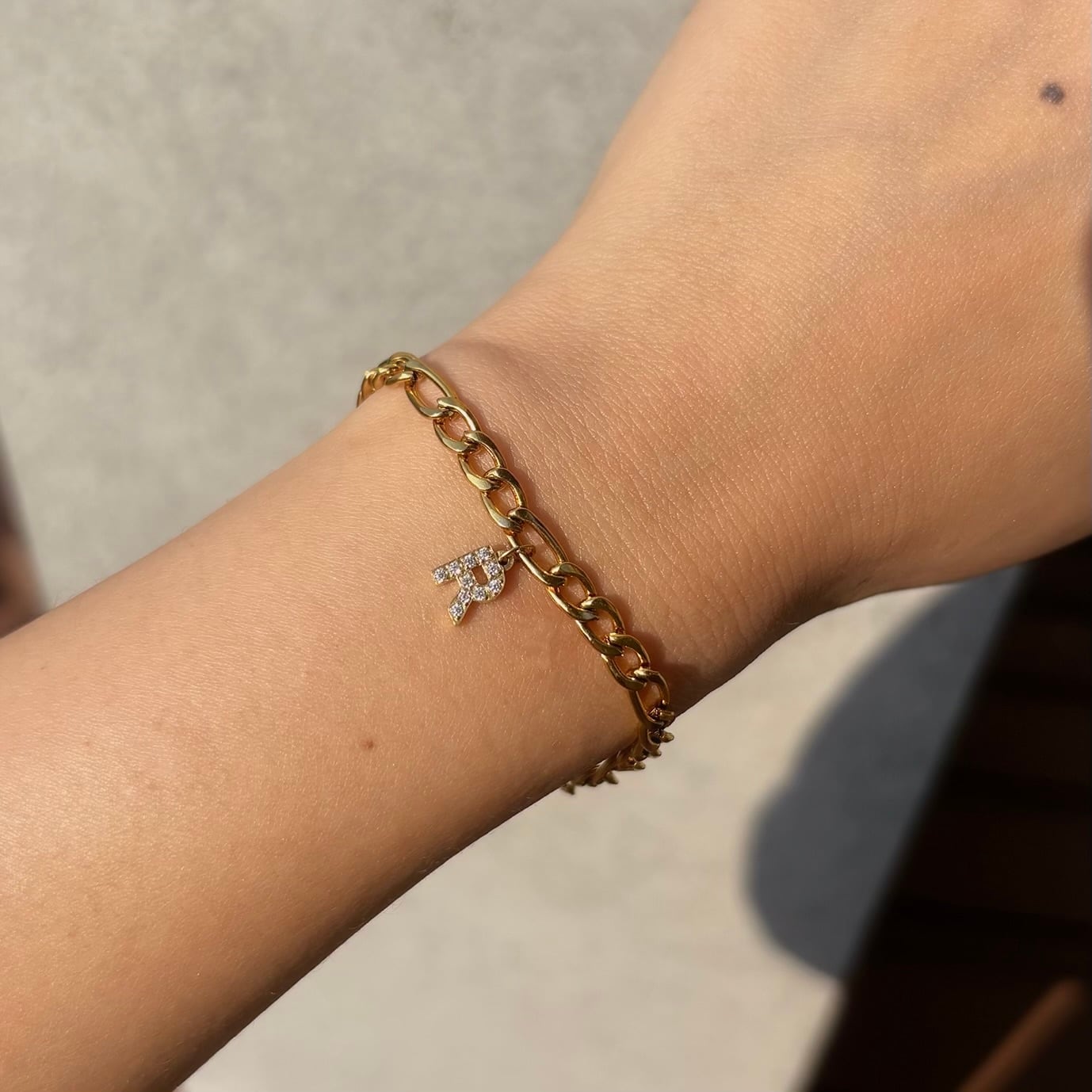 シンプルなチェーンだけど、手元のアクセントになるフィガロチェーンとミニサイズのイニシャルチャームを合わせたブレスレットです。