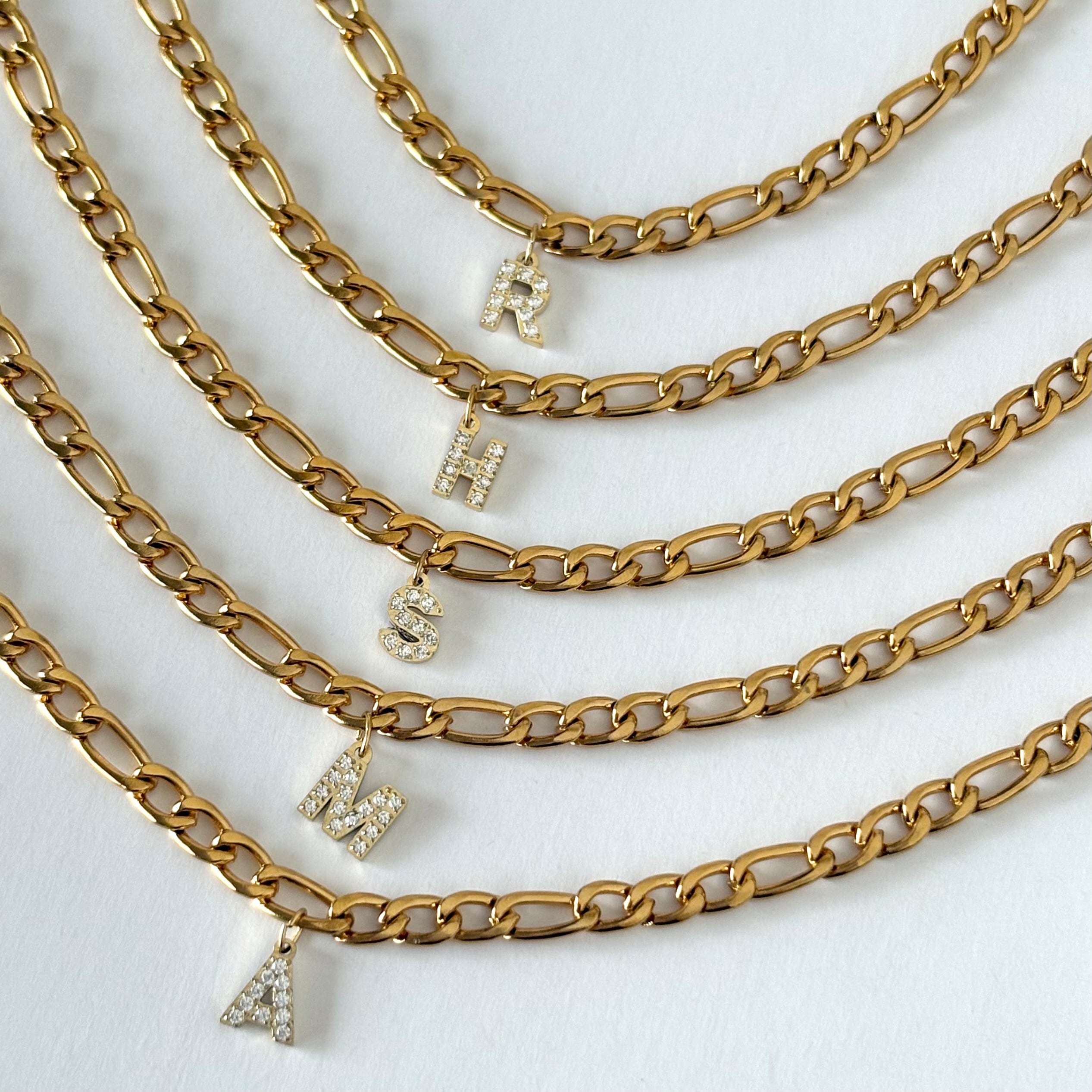 選べるジルコニアイニシャル フィガロチェーンブレスレット