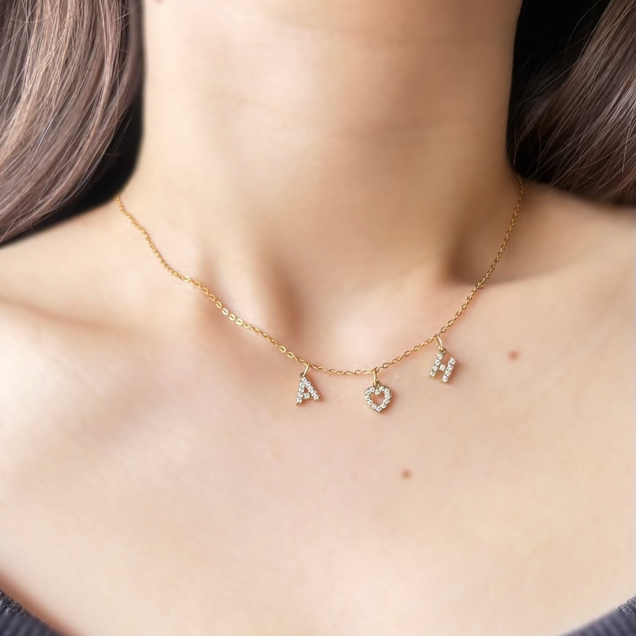【予約】選べる3つのジルコニアイニシャルチャーム チェーンネックレス
