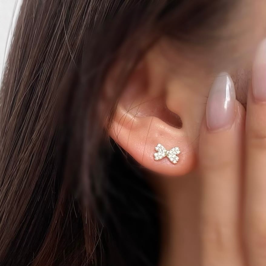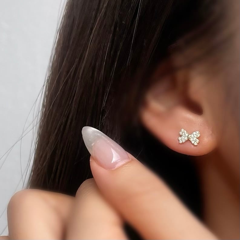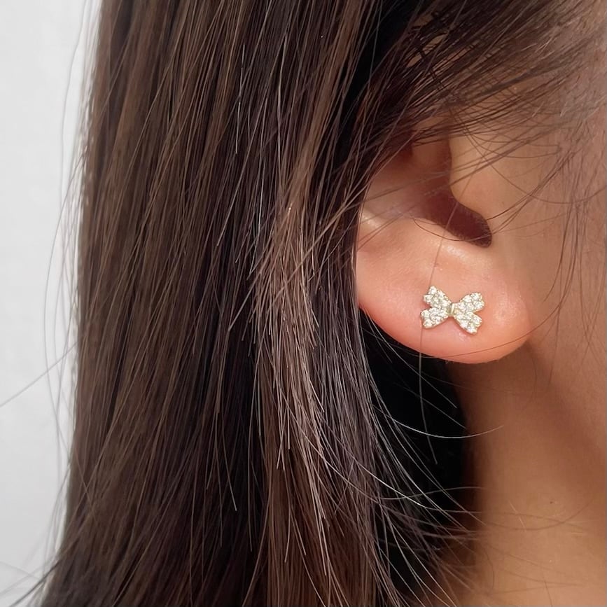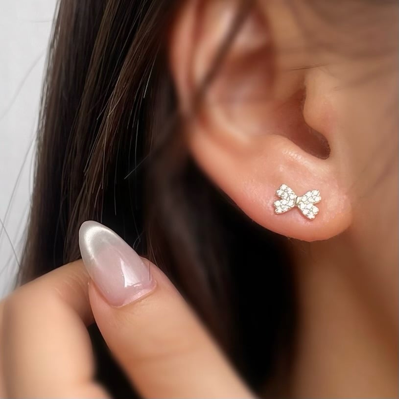 つけっぱなし用にも最適なミニサイズのリボンミニピアス。