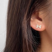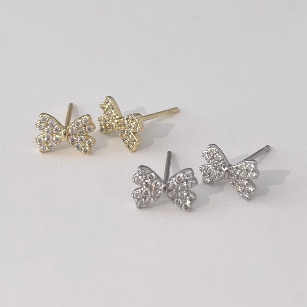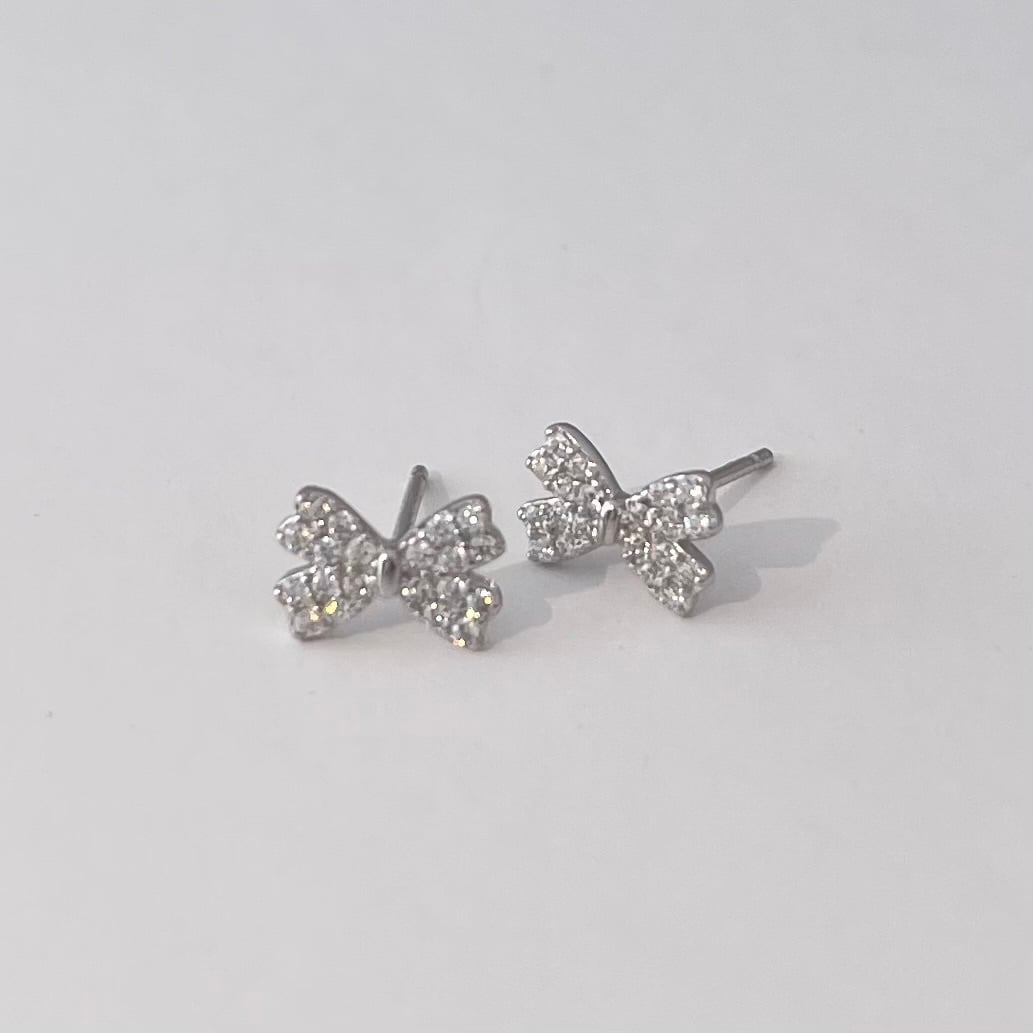 silver925 ジルコニア リボン ミニピアス