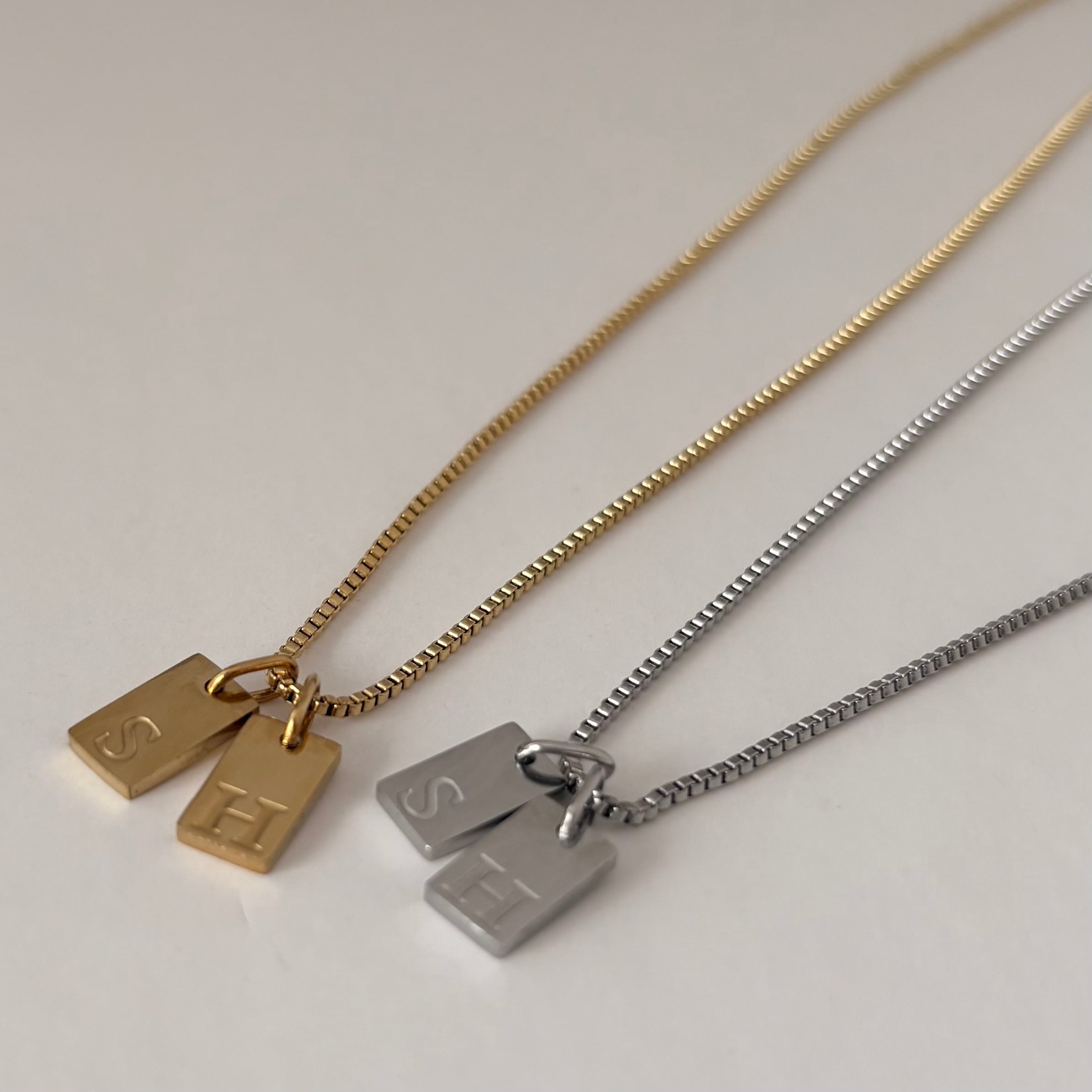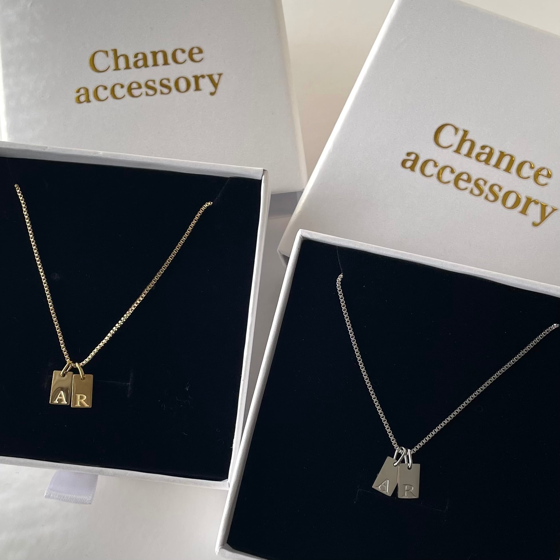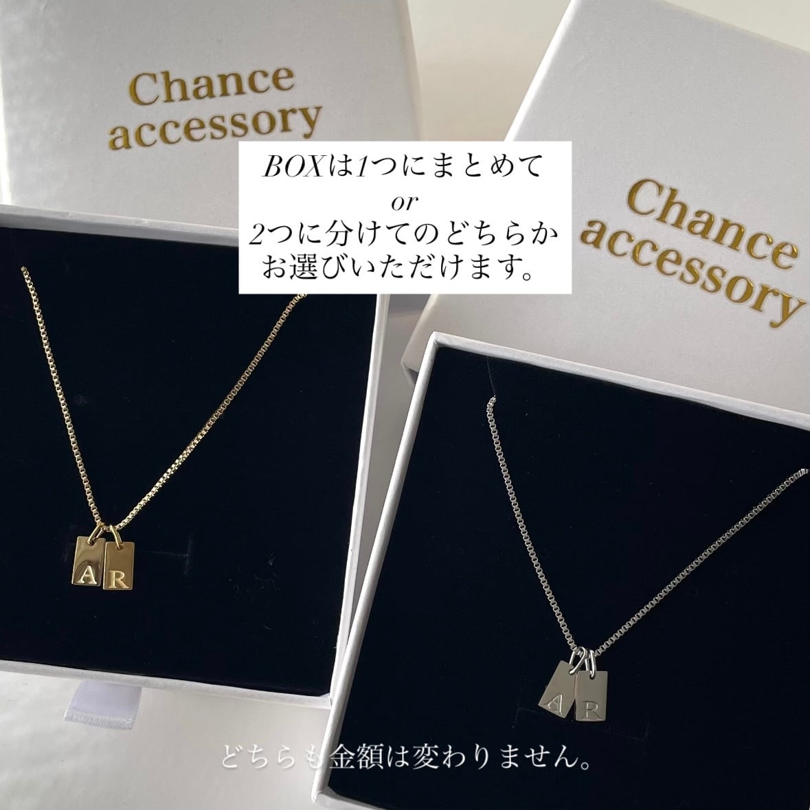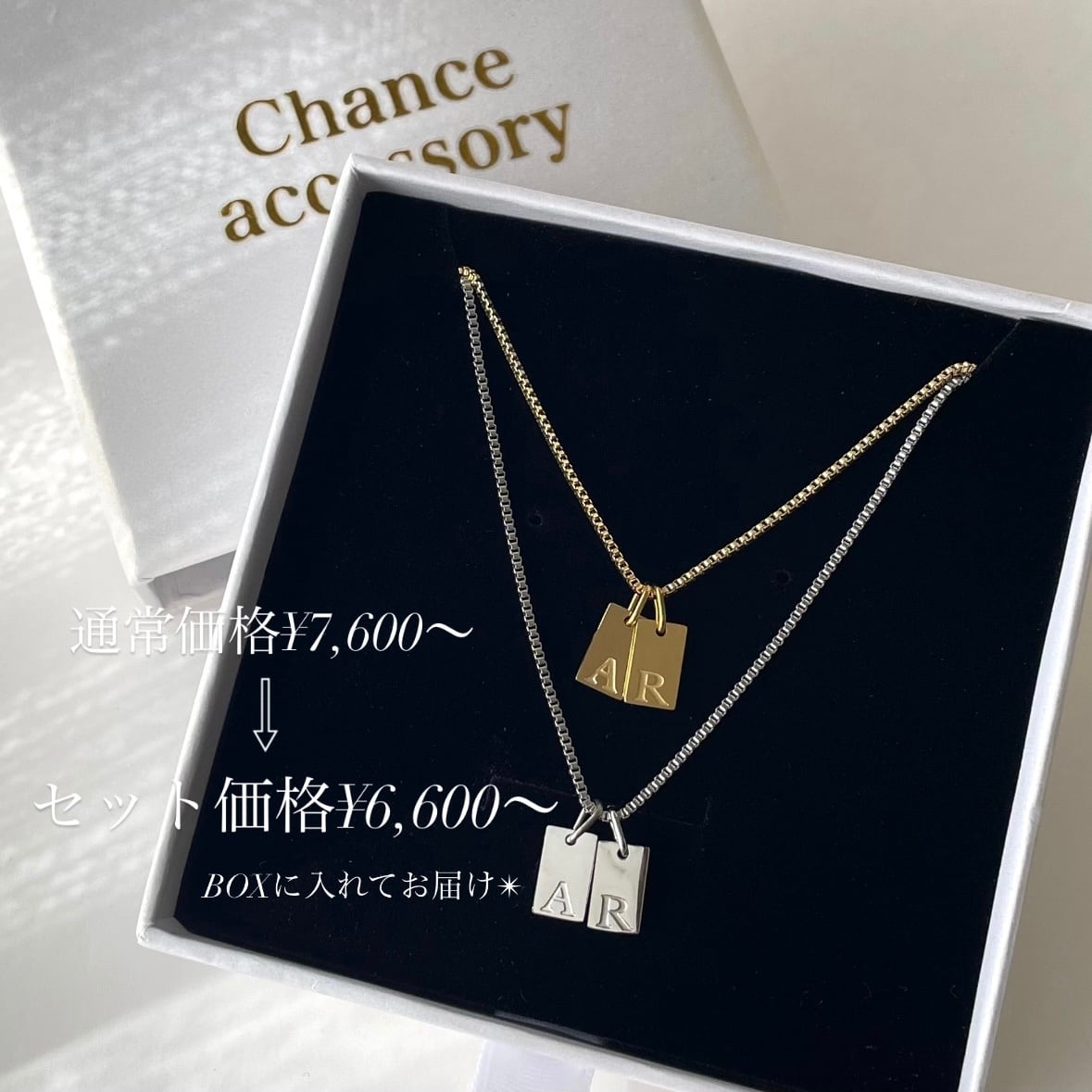 【セット販売Box付】イニシャルプレートネックレス2点セット【受注生産】