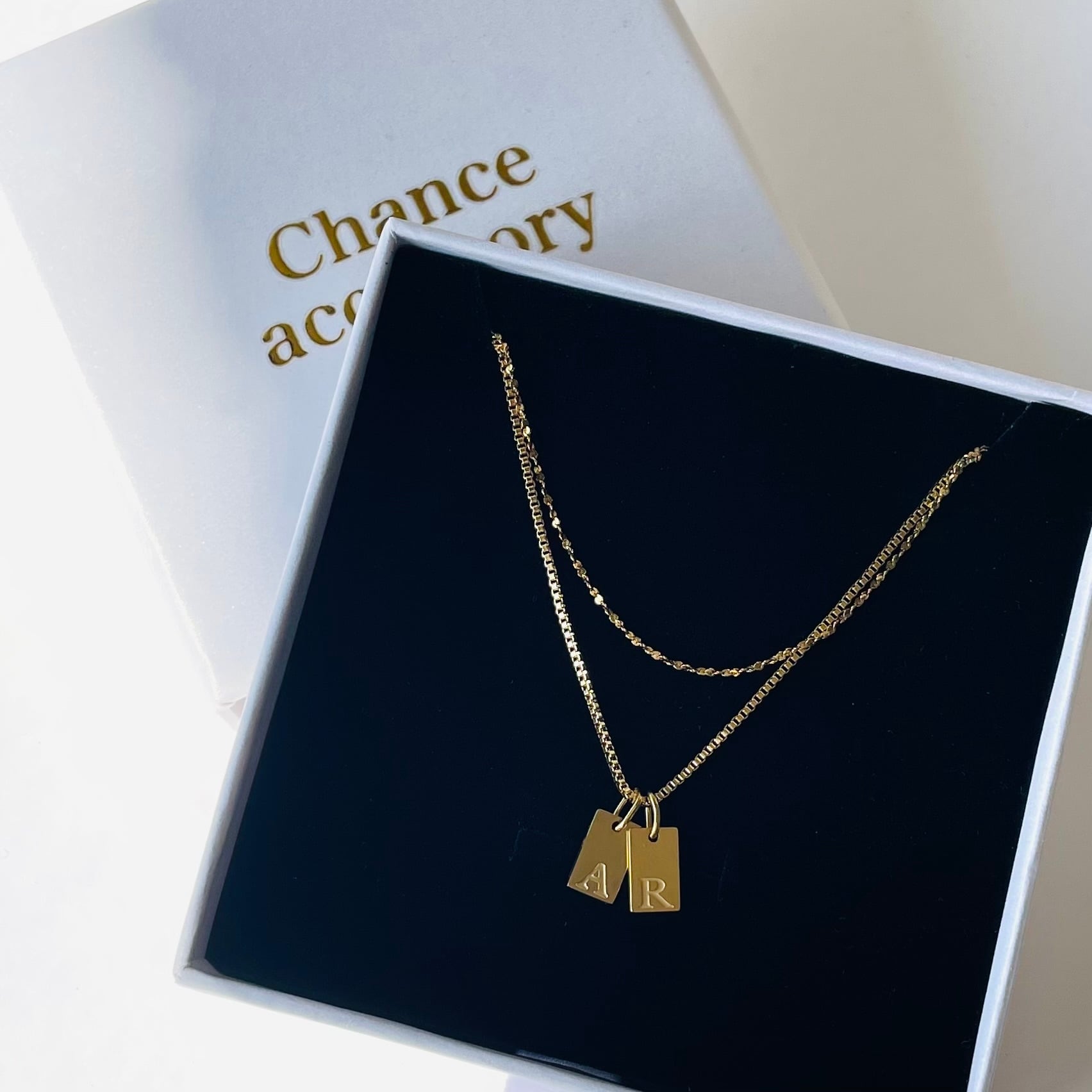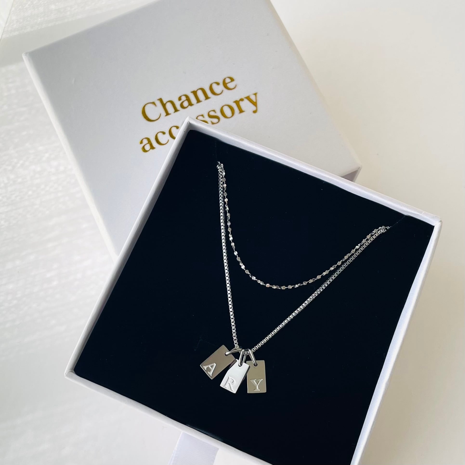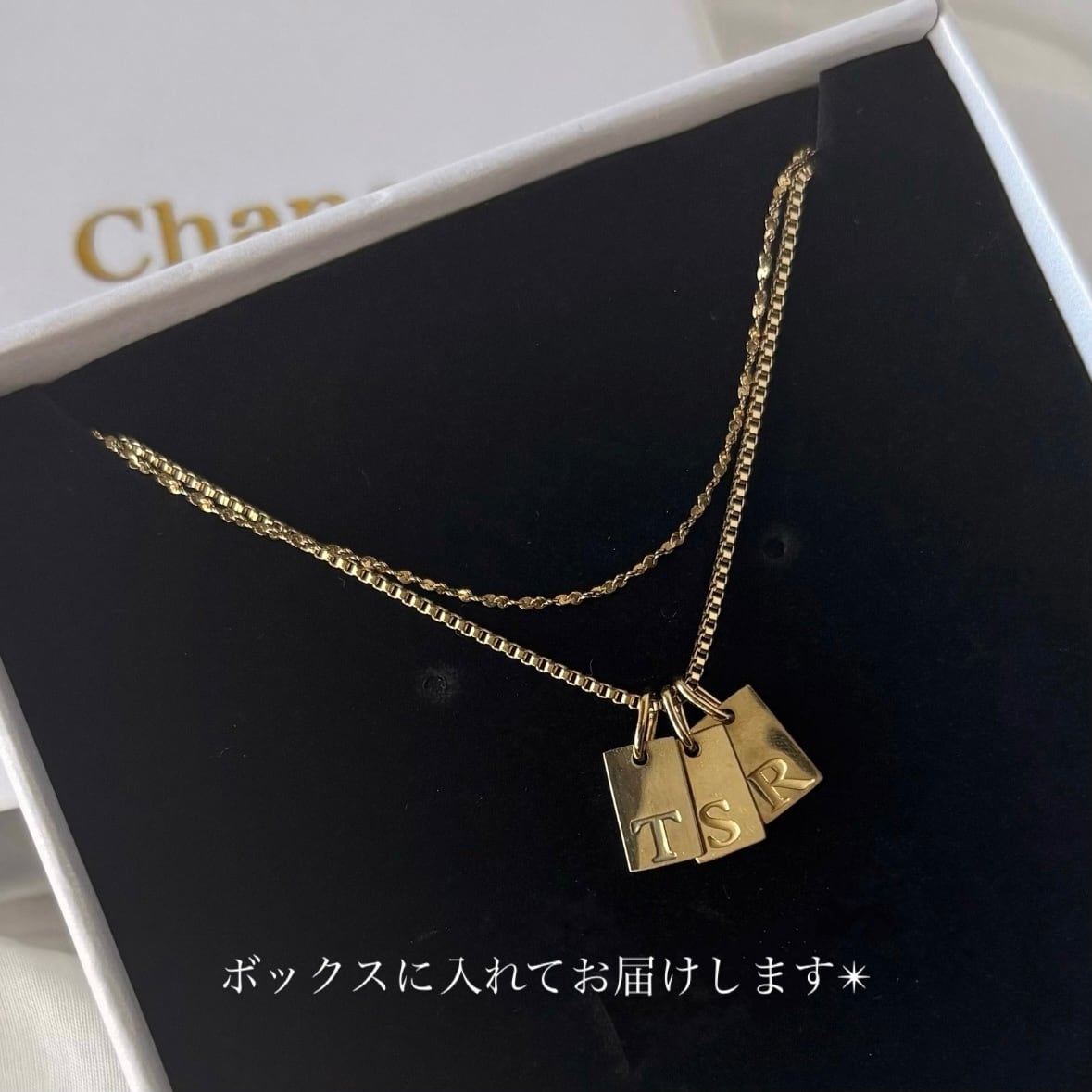【セット販売Box付】イニシャルプレートネックレス×グリッター極細チェーンネックレ【受注生産】