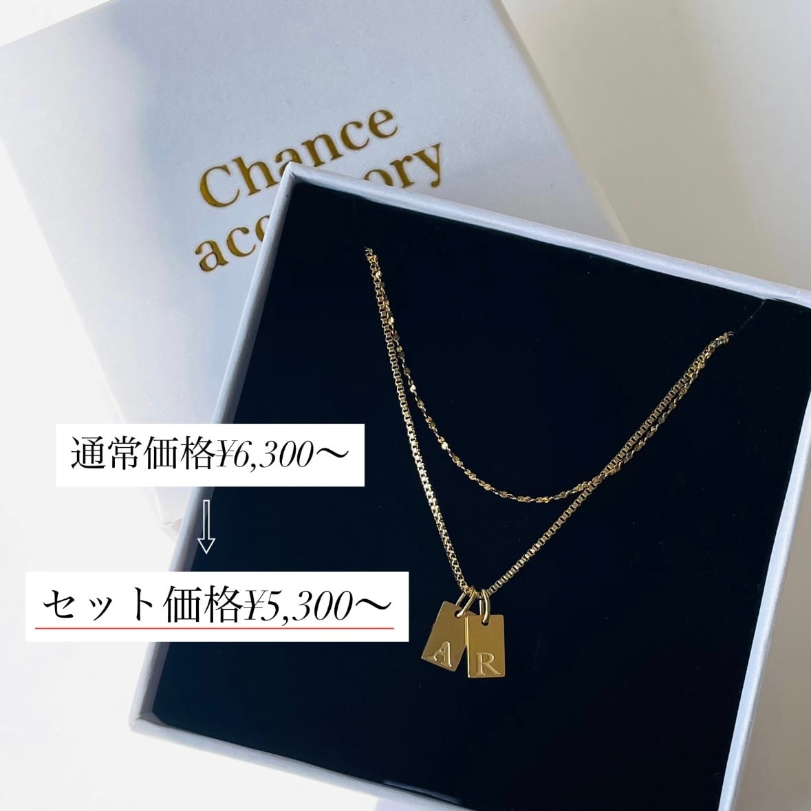 人気のイニシャルプレートと極細チェーンネックレスをお得なセットで販売致します。