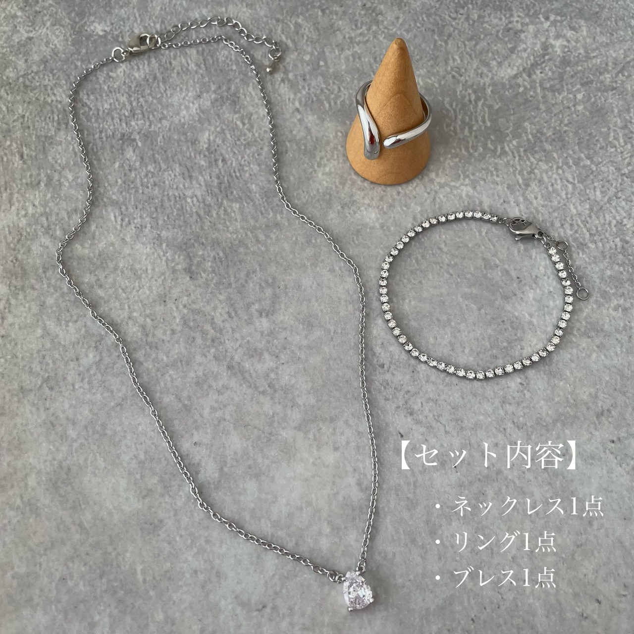 ①ドロップジルコニアネックレス