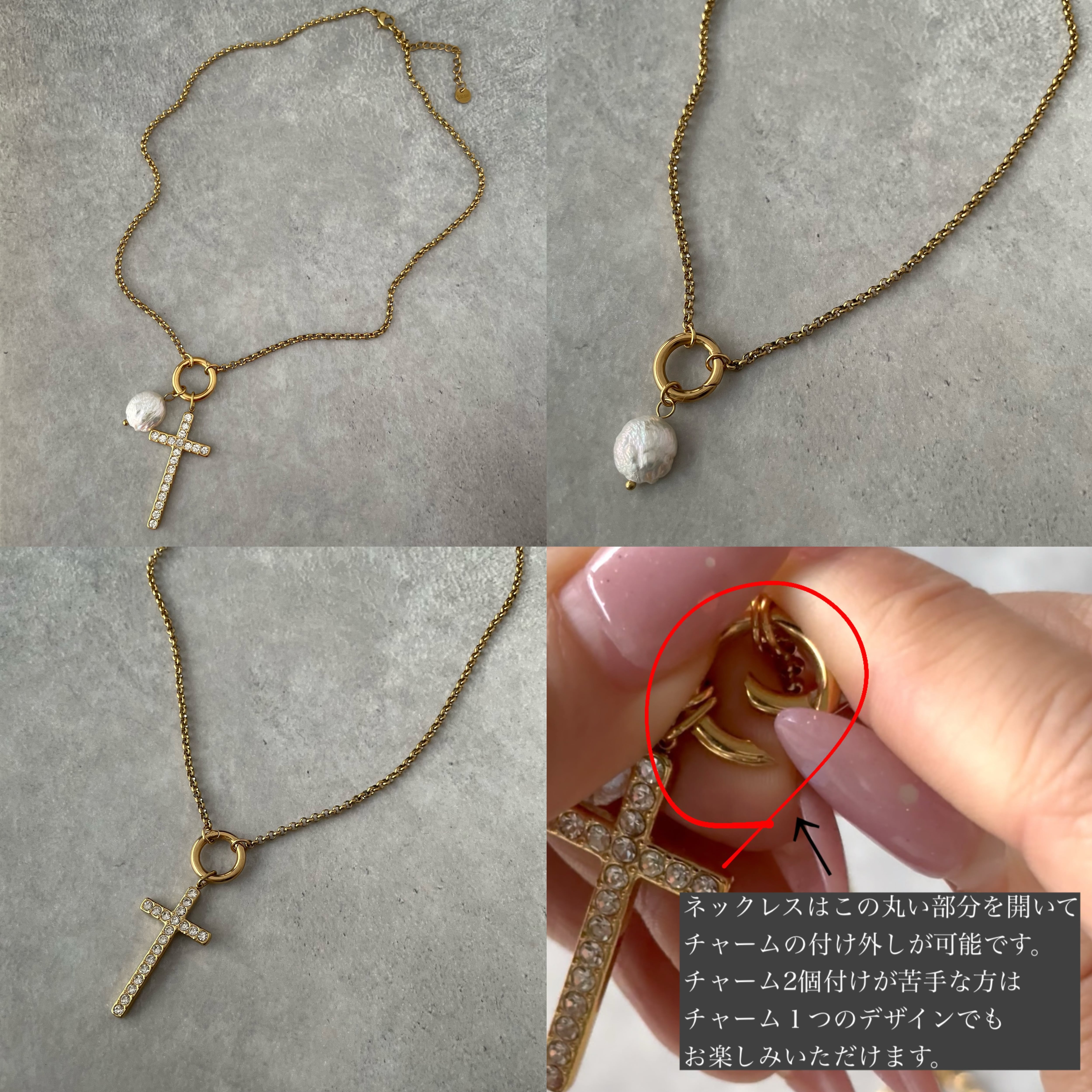①淡水パール&クロスジルコニアチャームカスタムネックレス