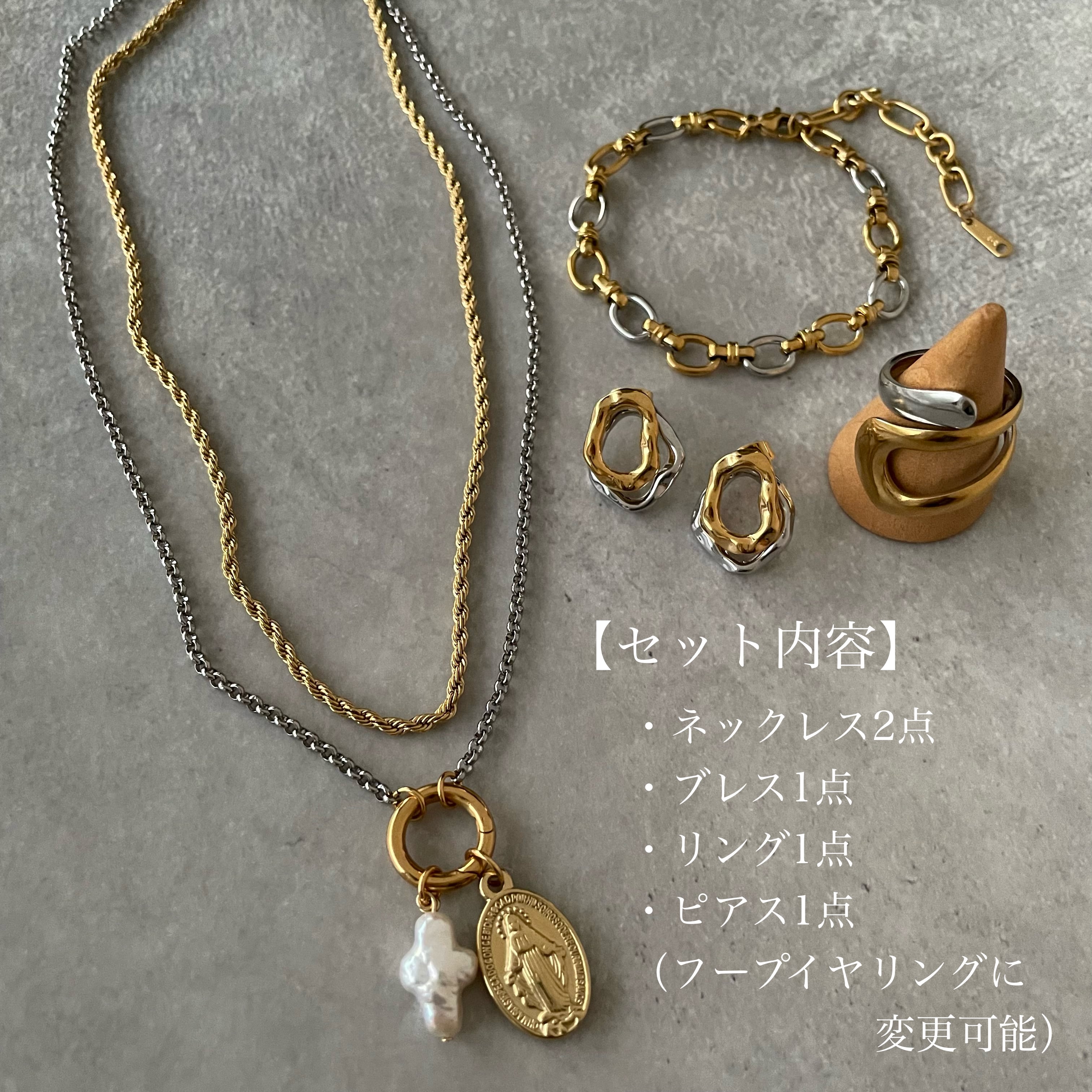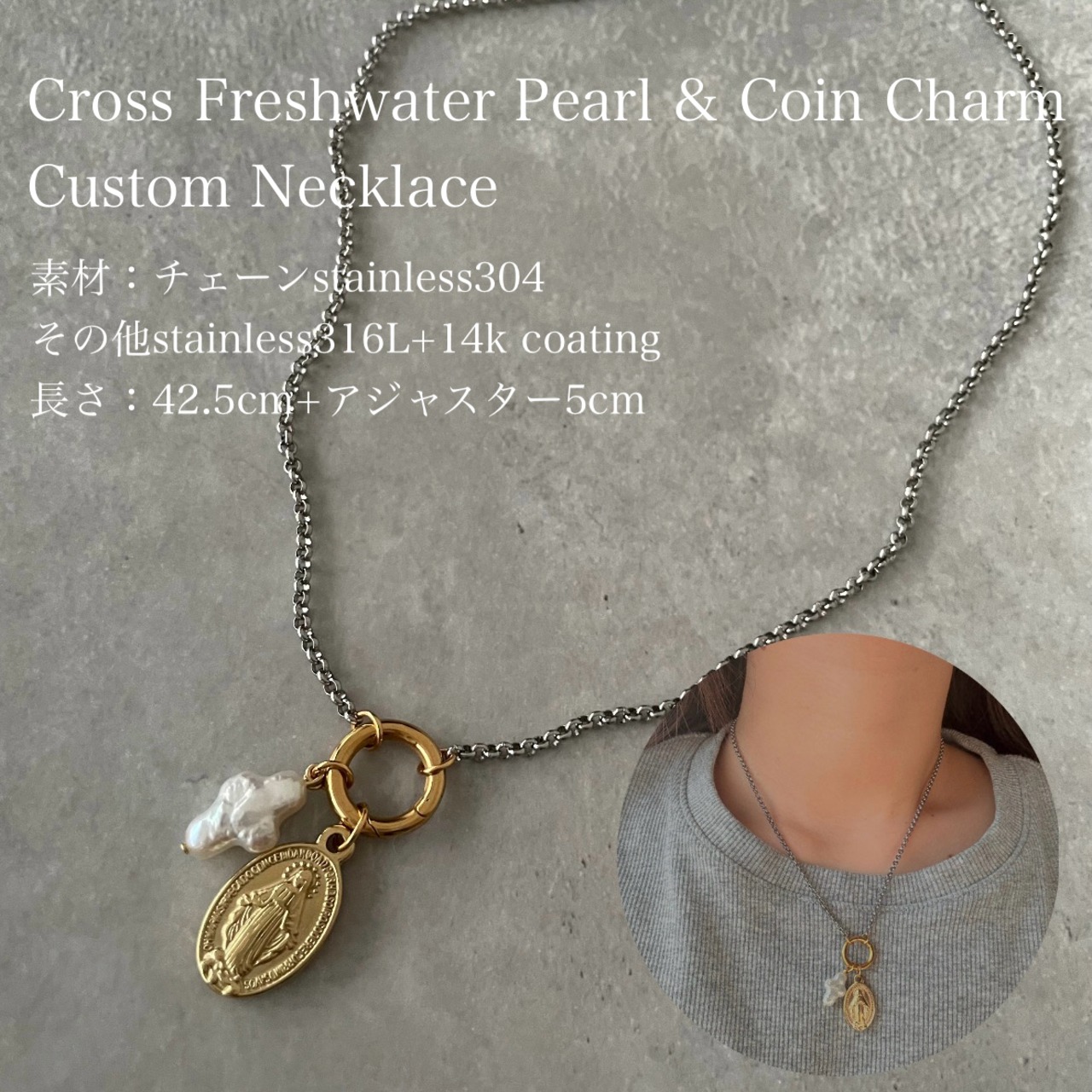①クロス淡水パール&コインチャームカスタムネックレス
