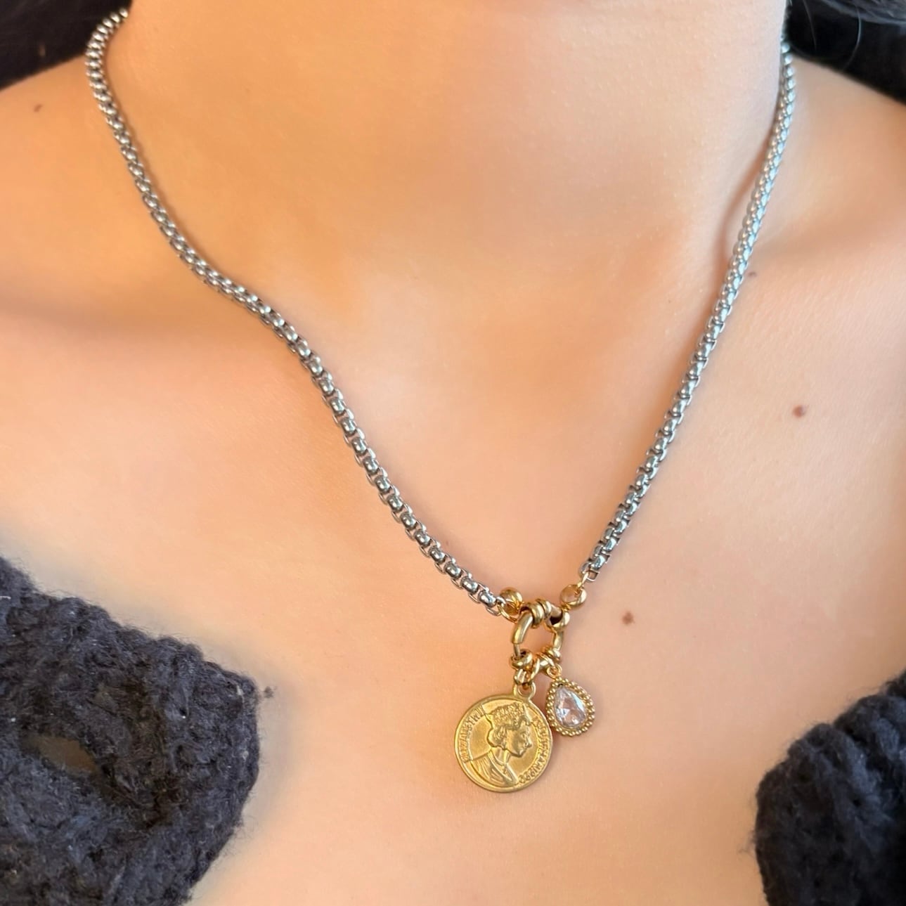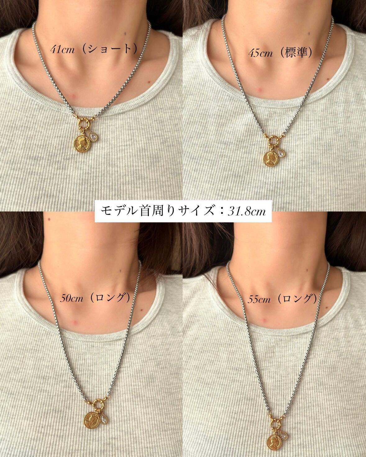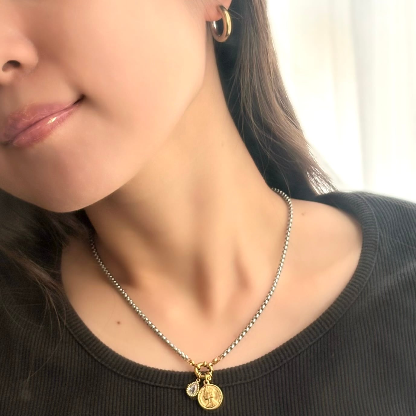【4/24 21時発売】数量限定 母の日セット ミックスカラーコイン&ジルコニアチャームネックレス+ミックスカラーフープピアス