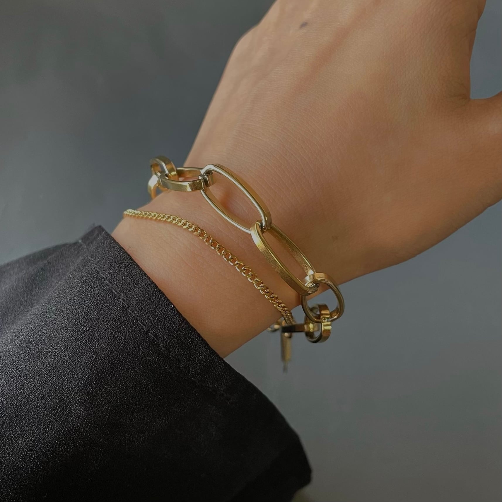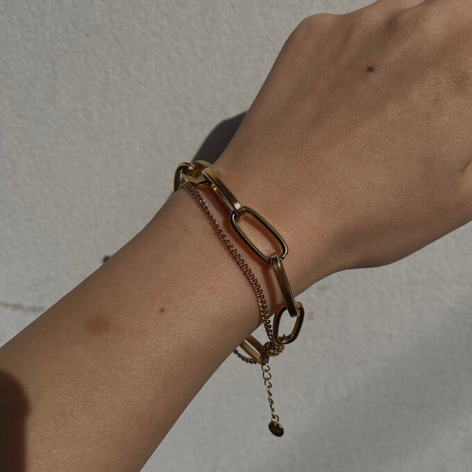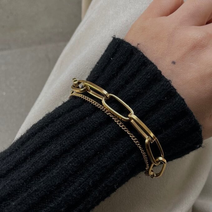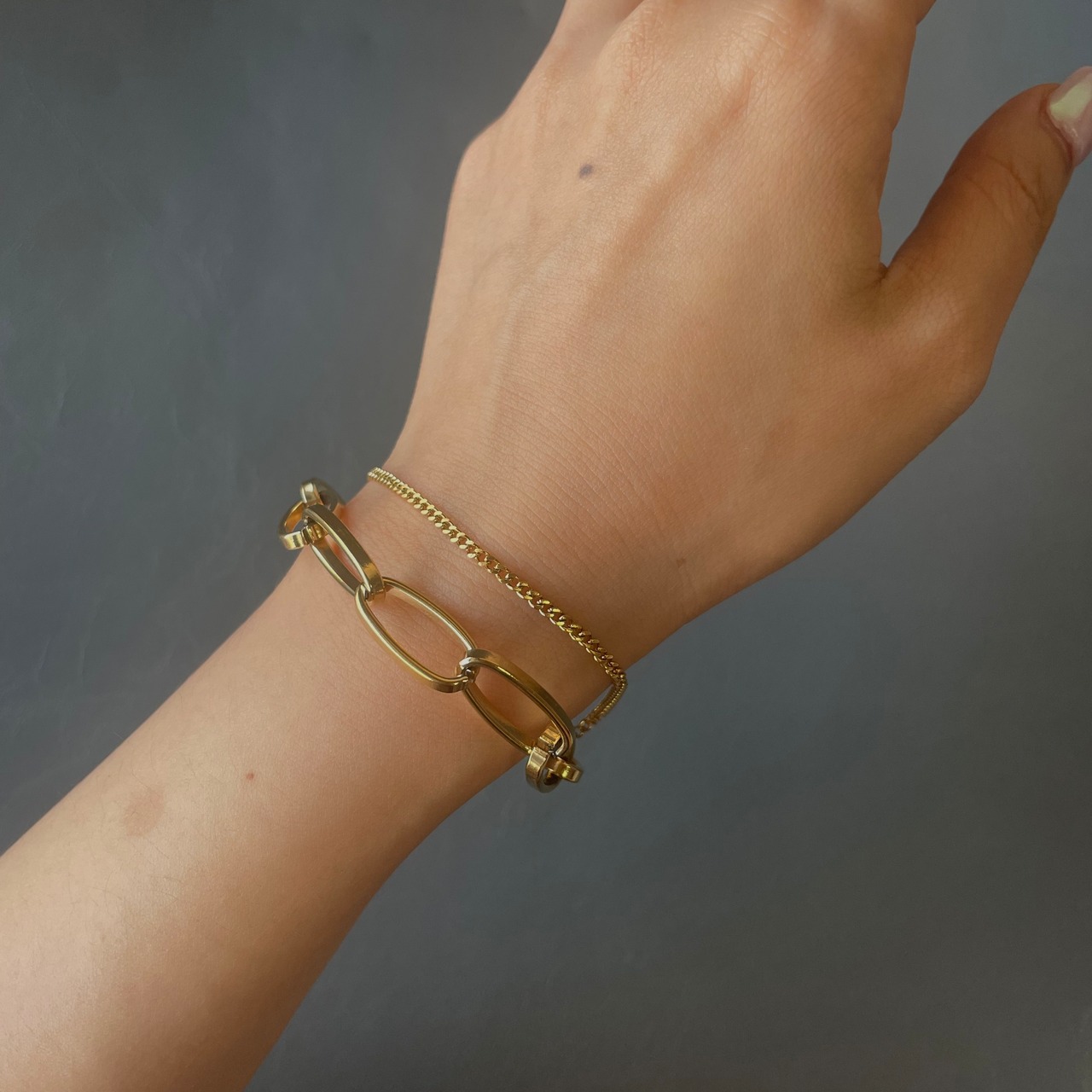 2種類のチェーンを組み合わせたシンプルながらも存在感あるチェーンブレスレットです。