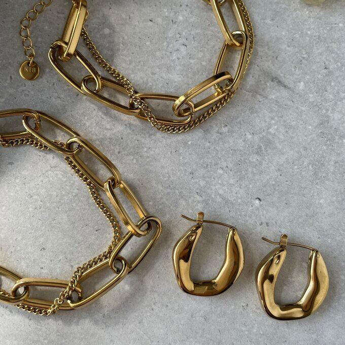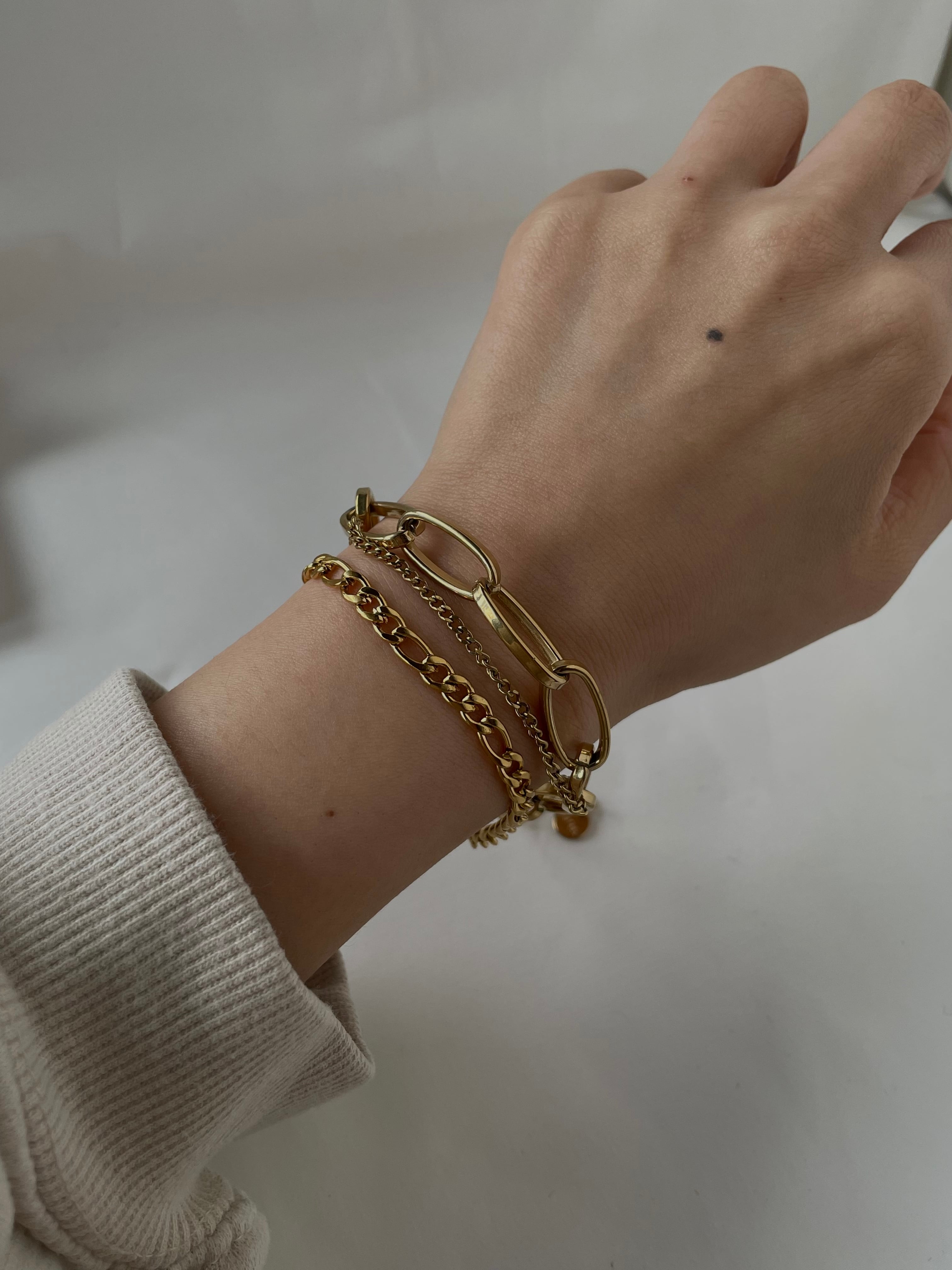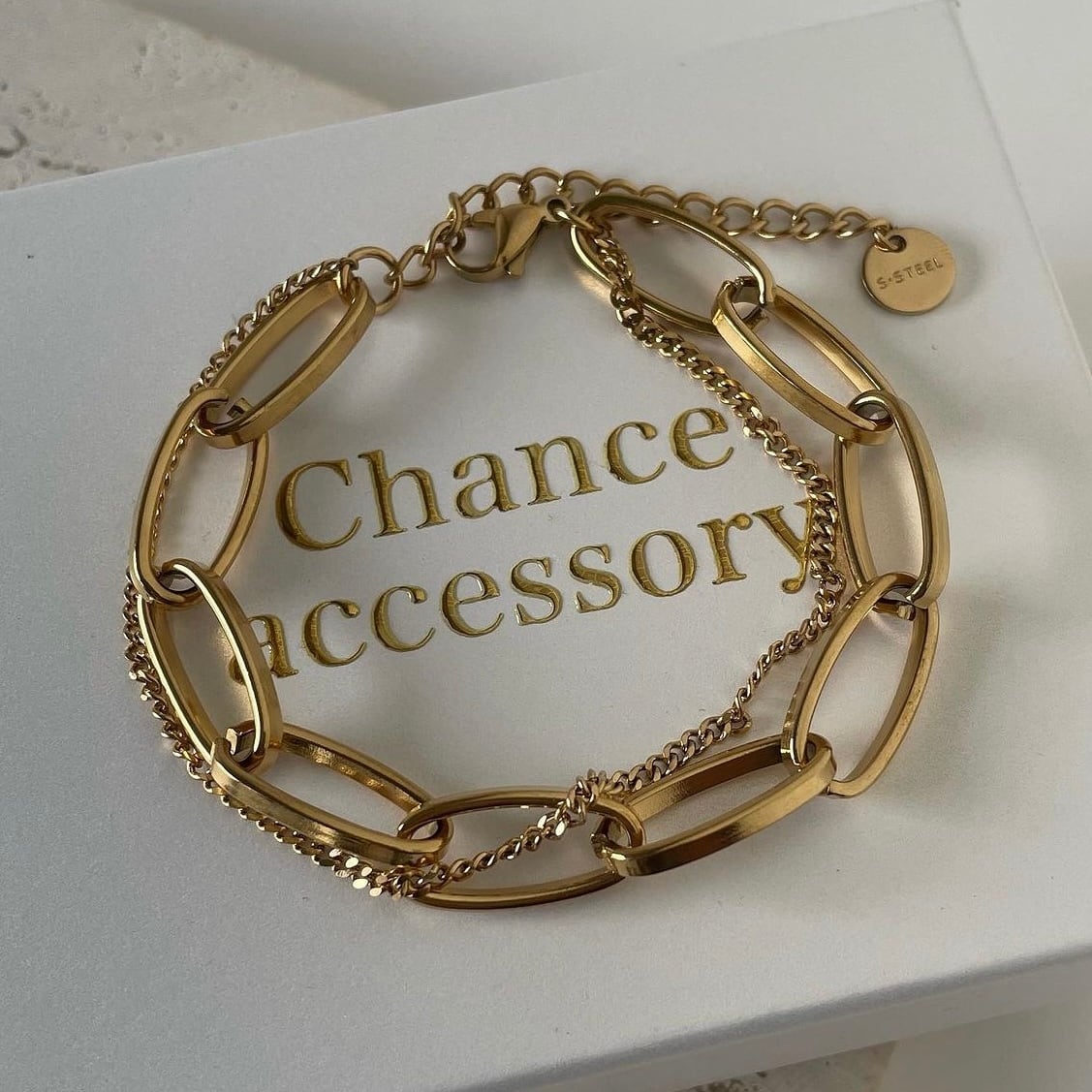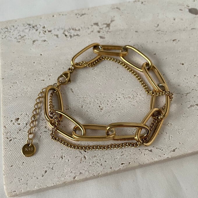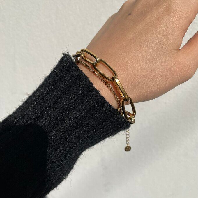 2種類のチェーンを組み合わせたシンプルながらも存在感あるチェーンブレスレットです。