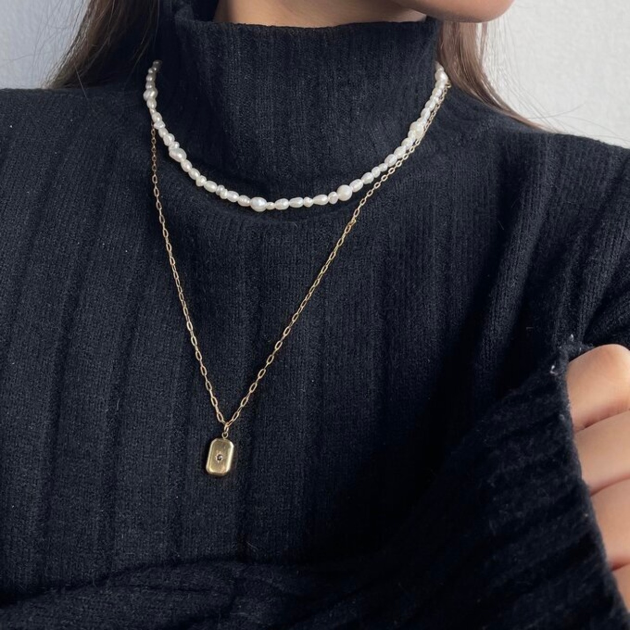 長めの作りなので、タートルネックのセーターにも合わせやすいアイテムです◎