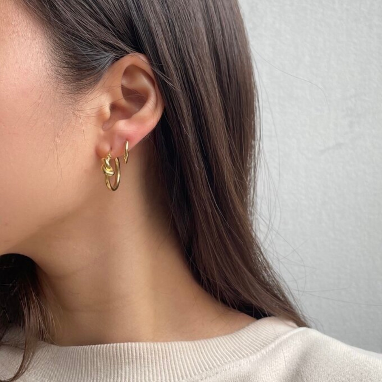 通常のピアスポストより0.1〜0.2mmほど太めの作りになります。基本的には問題なく着けていただけるサイズですが、ピアスの穴が小さい方はご検討の上ご購入下さい。