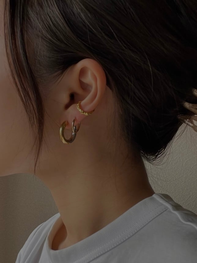 シンプルながらも珍しいミックスカラーのフープピアス。