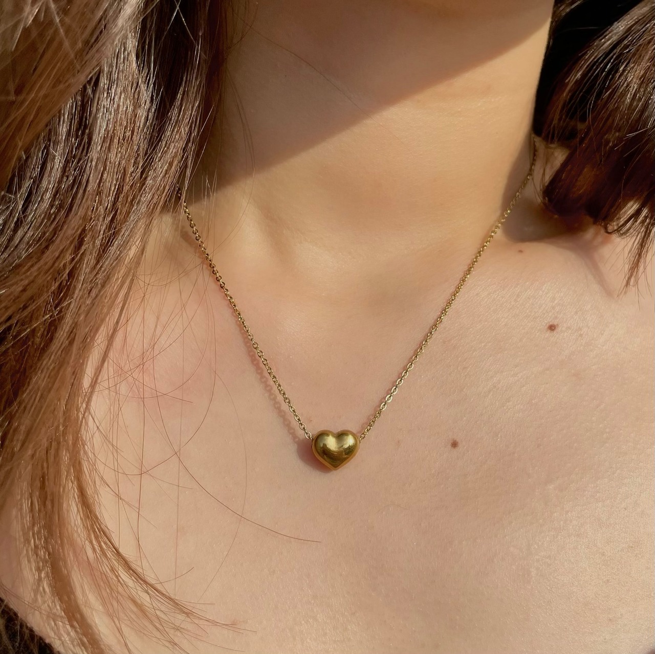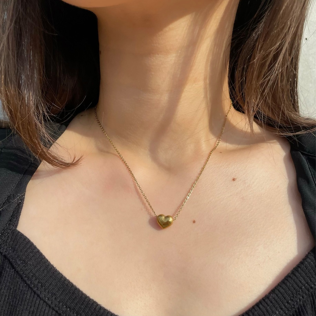コロンとしたハートチャームとチェーンの組み合わせが毎日付けにもピッタリのアイテム。