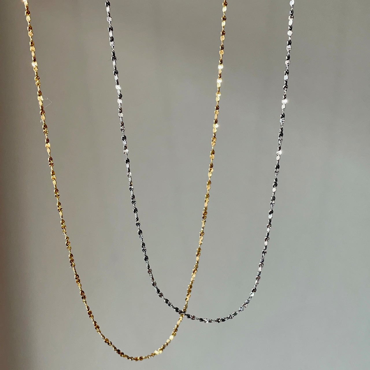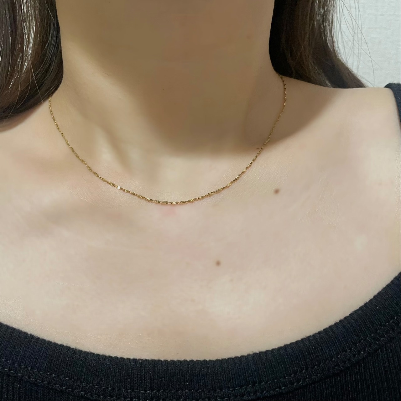 1mmの極細チェーンはシンプルかつ上品なデザインのネックレスです。