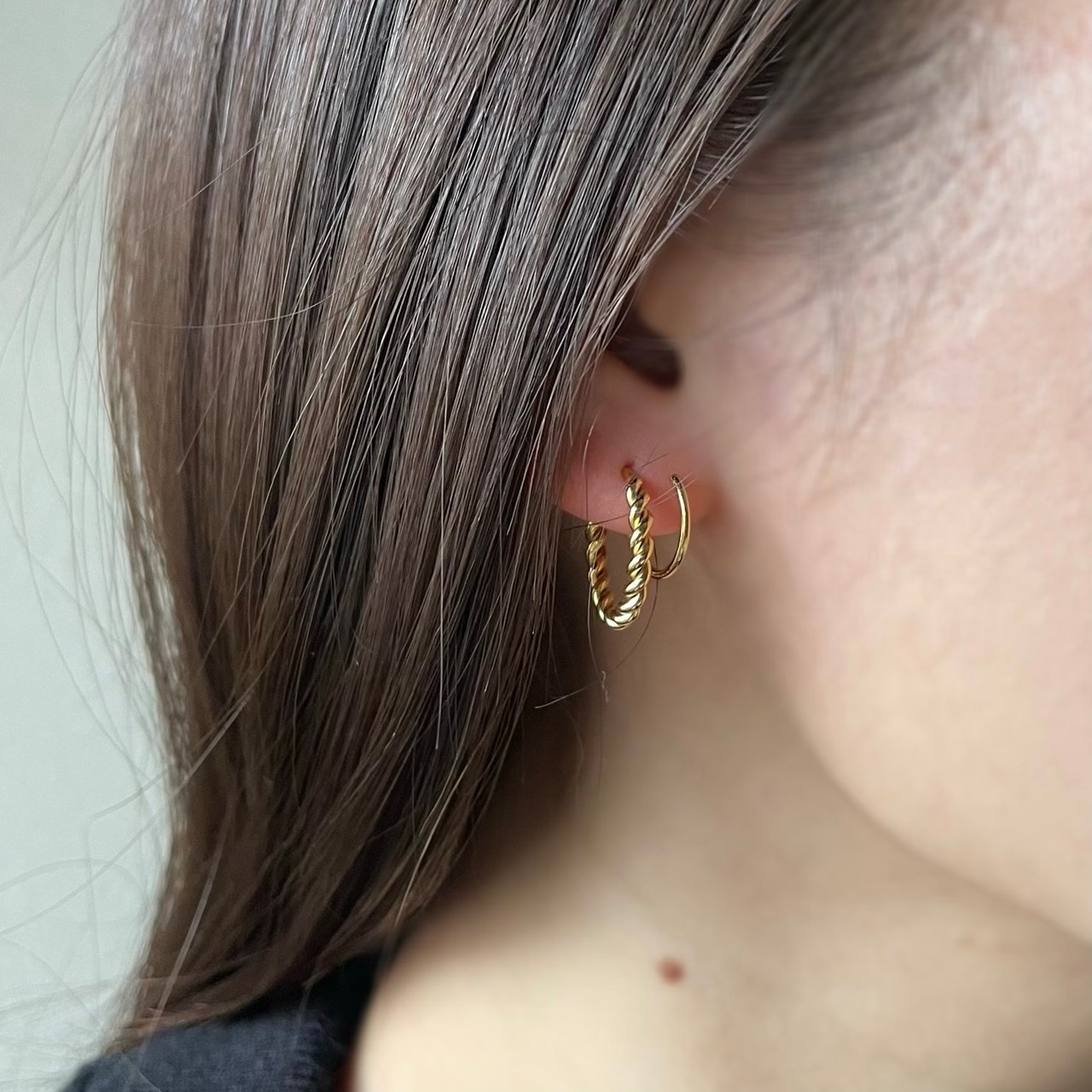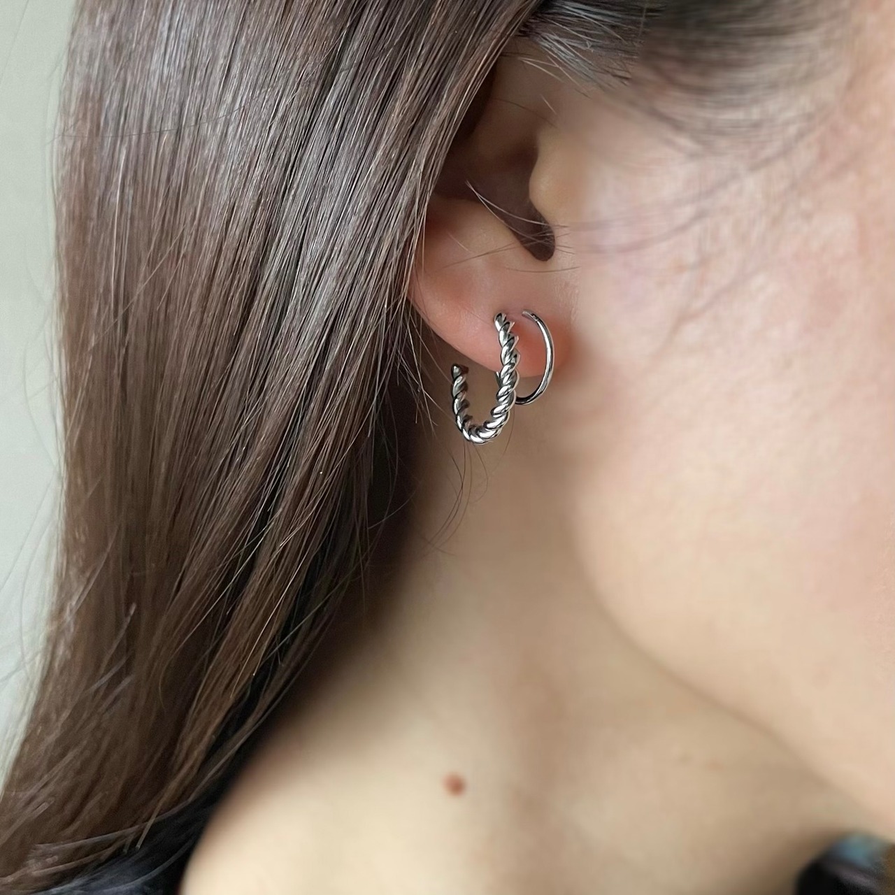 クルクルと回して装着するピアス。