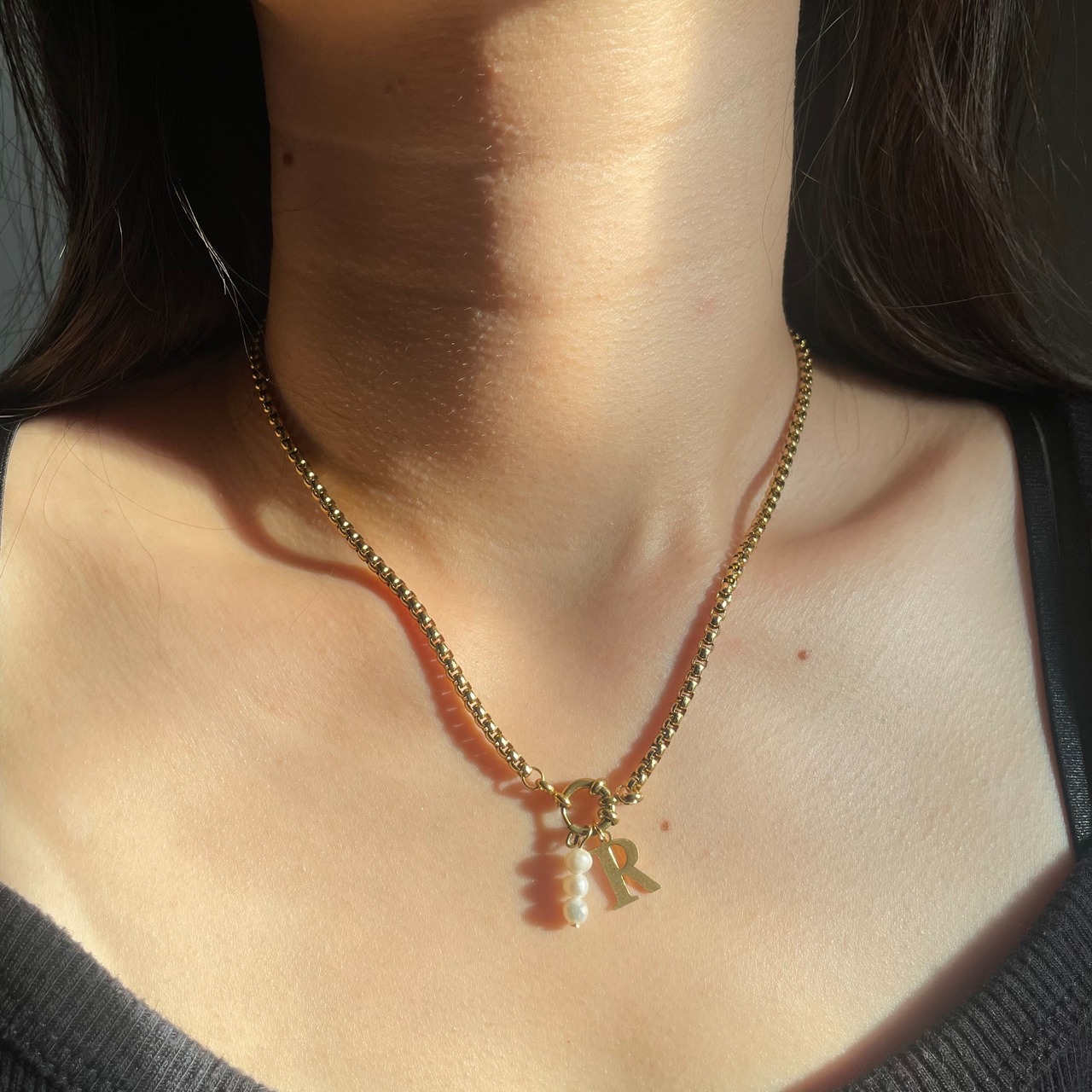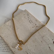 選べるイニシャル 淡水パール ベネチアンチェーンネックレス