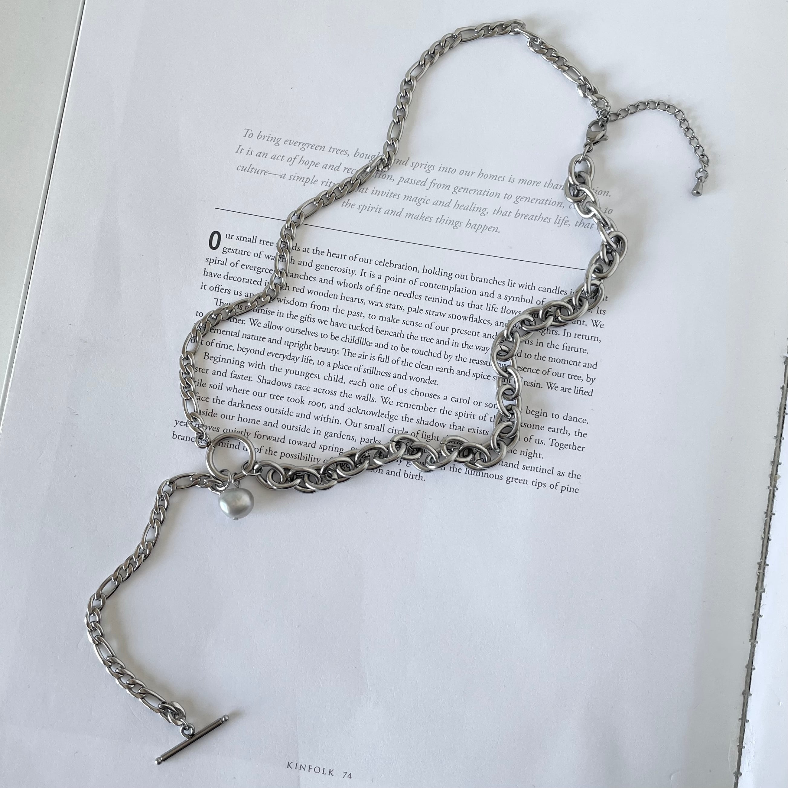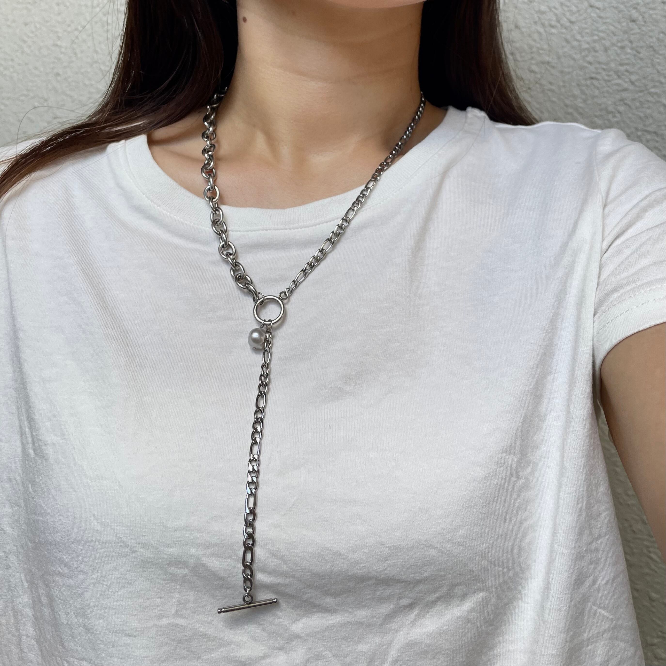 アシメデザインがおしゃれなロングチェーンネックレス。