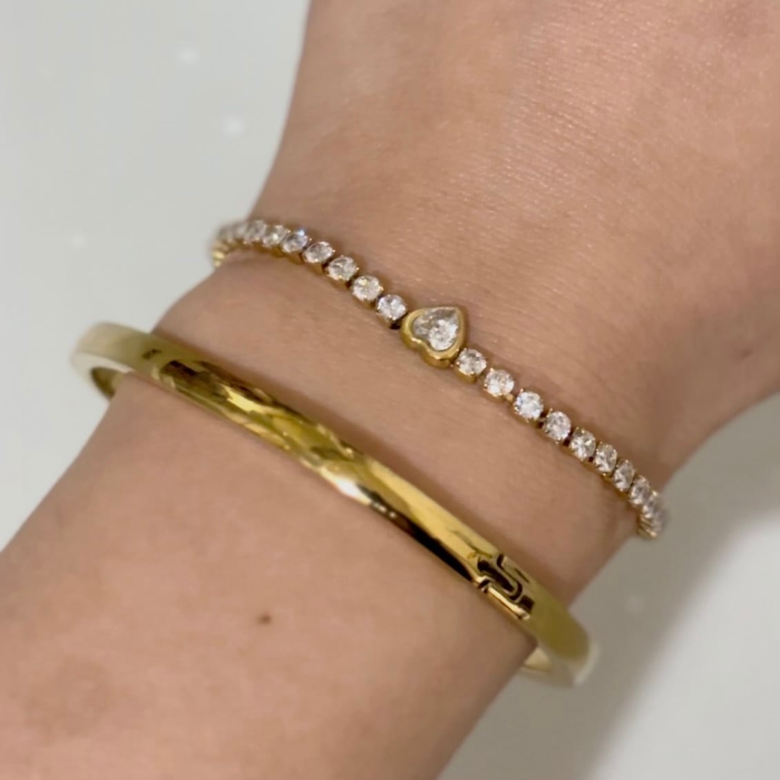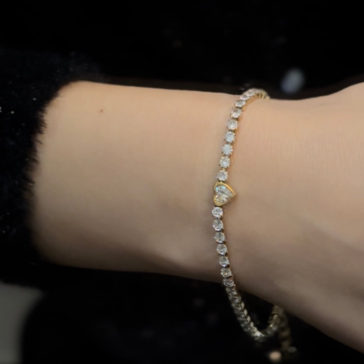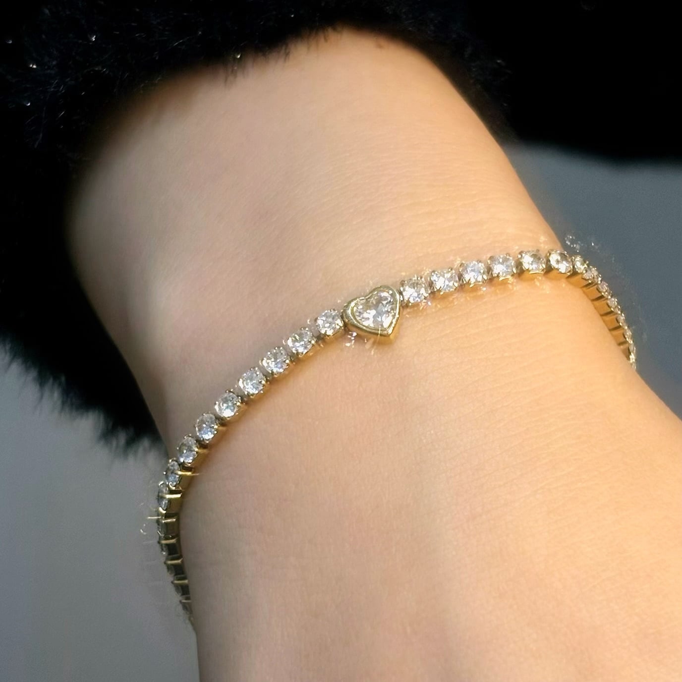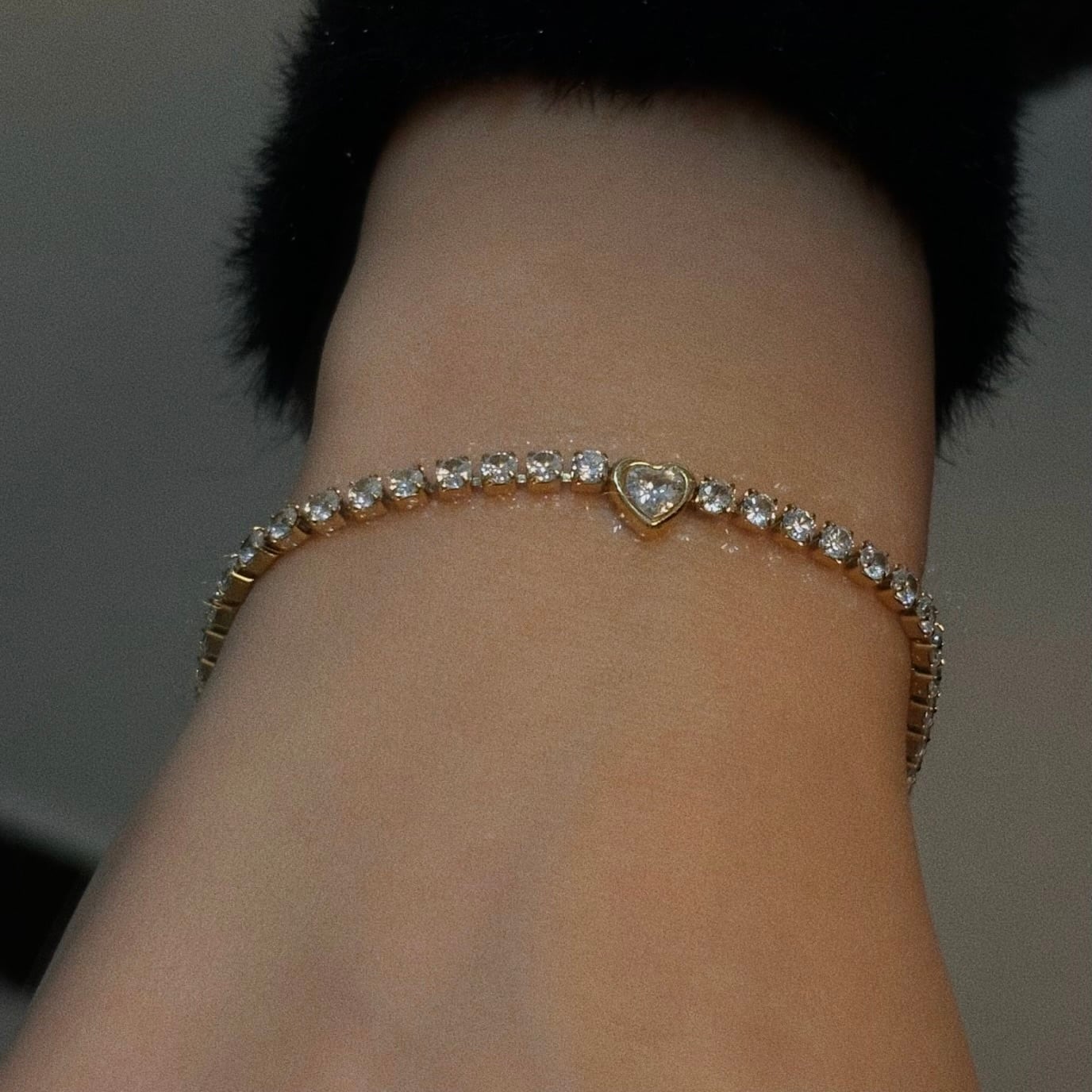 放ち、ハートジルコニアが女性らしく上品でさりげない存在感のあるブレスレットです。