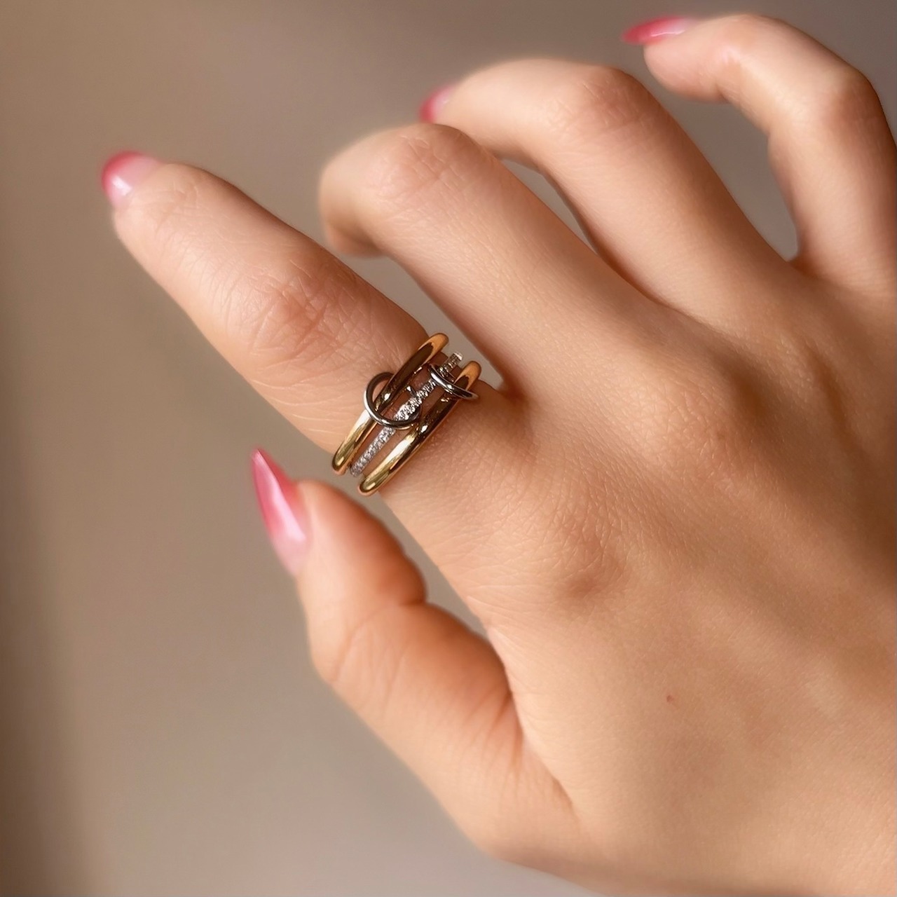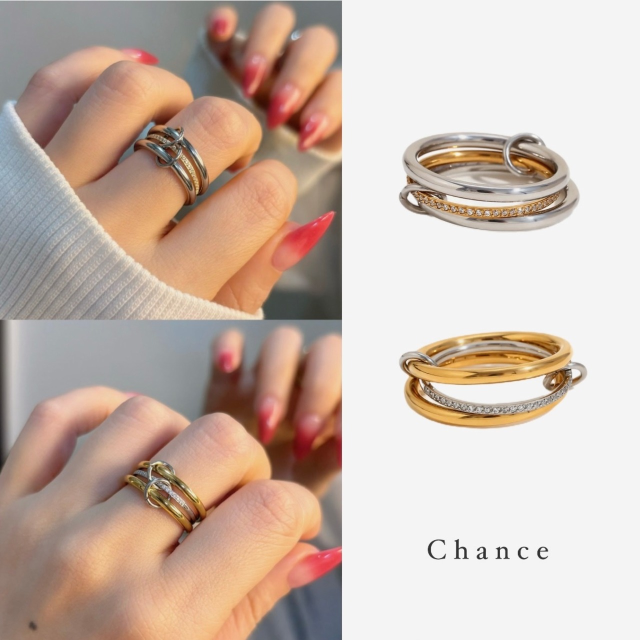 ミックスカラー ジルコニア トリプル リング