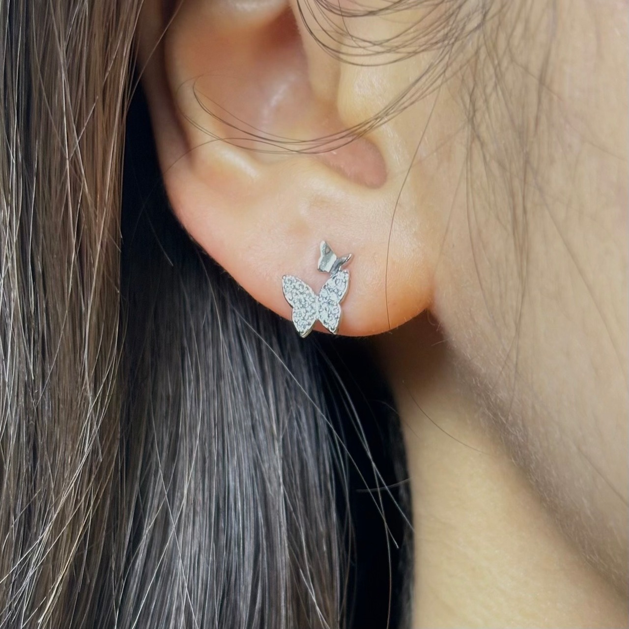silver925 ジルコニア ダブル バタフライ ミニピアス